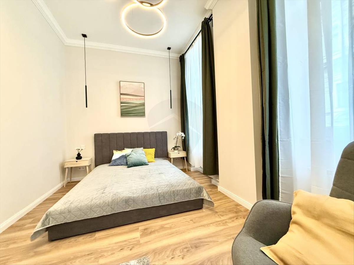 Budapest VII. kerületének egyik legpatinásabb részén, a New York Kávéház közvetlen szomszédságában kínálunk megvételre egy 93 m²-es, felújított, napfényes lakást, liftes társasház 3. emeletén.