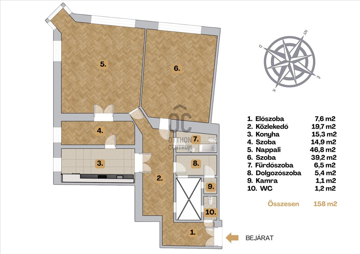 • 4. emeleti, 158 m²-es, világos és tágas terekkel rendelkező, igazi nagypolgári lakás.
