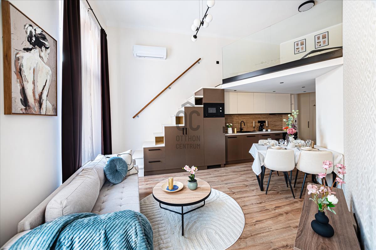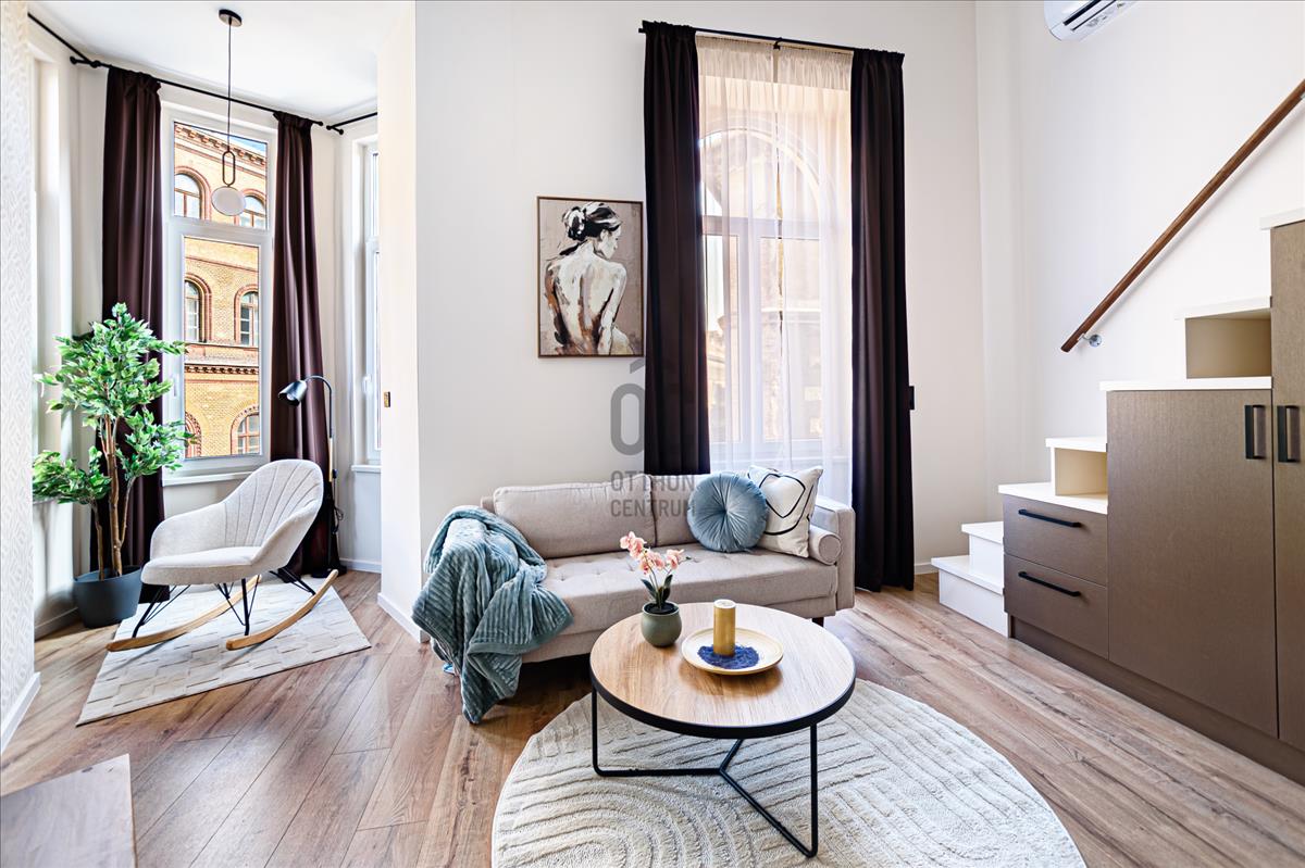 Eladó egy teljeskörűen, prémium minőségben felújított, galériás lakás a József körút 8. Szám alatt, Budapest egyik legkedveltebb központi lokációjában!