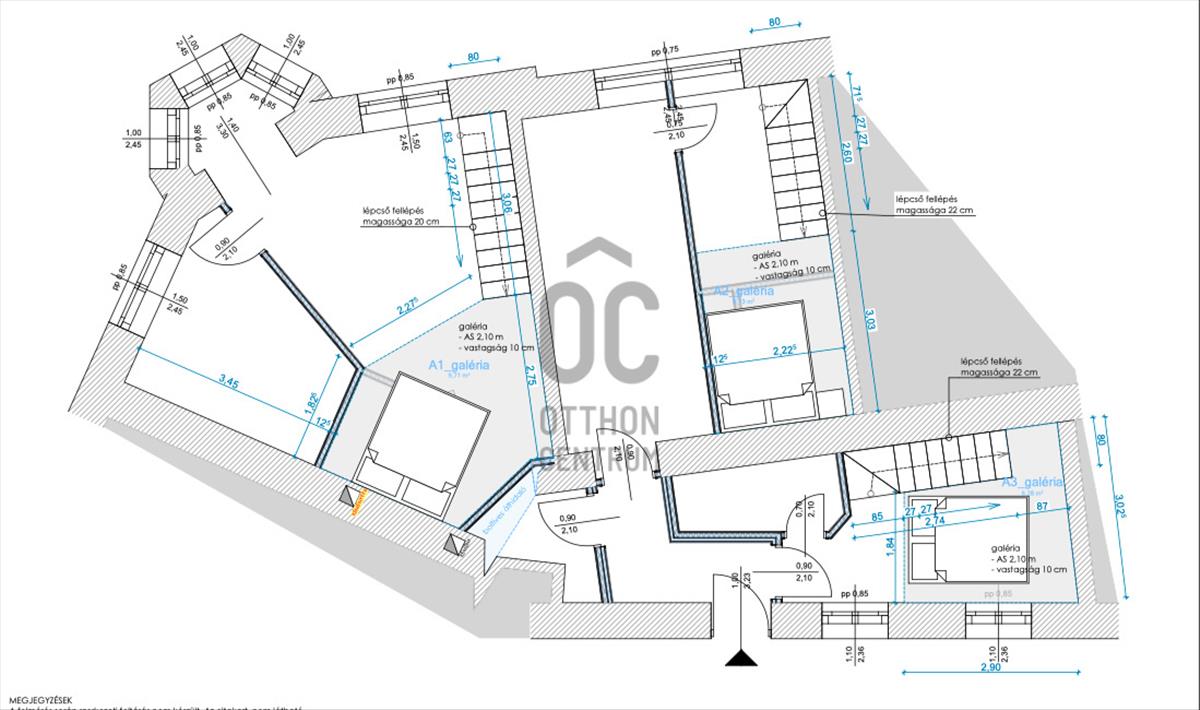 • 36 m² + 10 m² galéria (175 cm magasság)