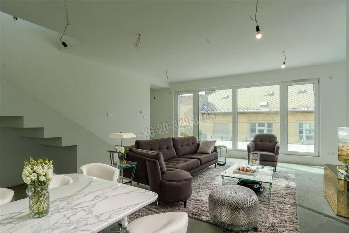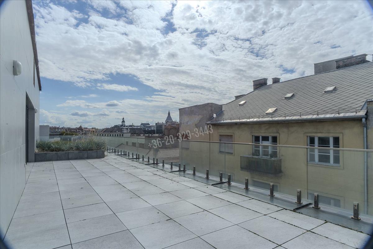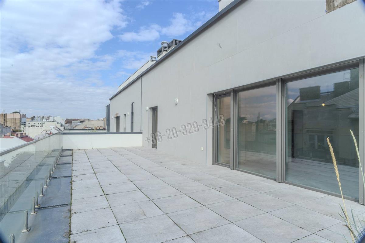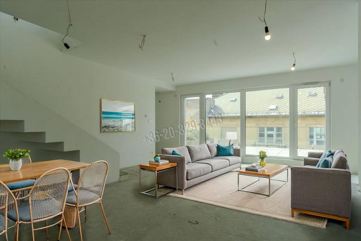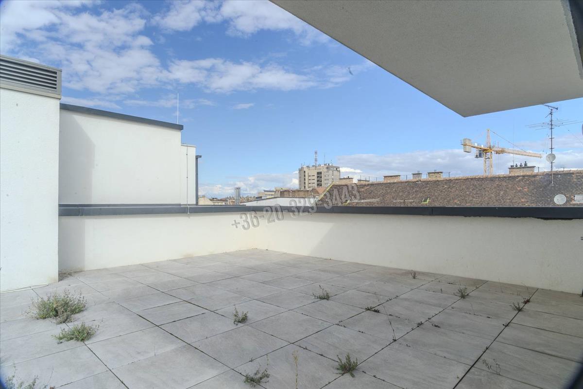 In Budapest, District viii, in the Csarnok neighborhood, a unique, two-level, 96 sqm apartment with exceptional features, built in 2023, is for sale with a 131 sqm terrace and balcony, in a penthouse condominium, at 90% completion.