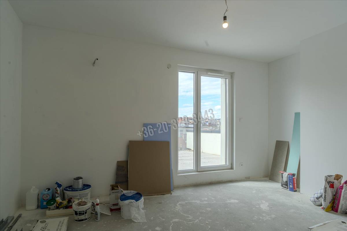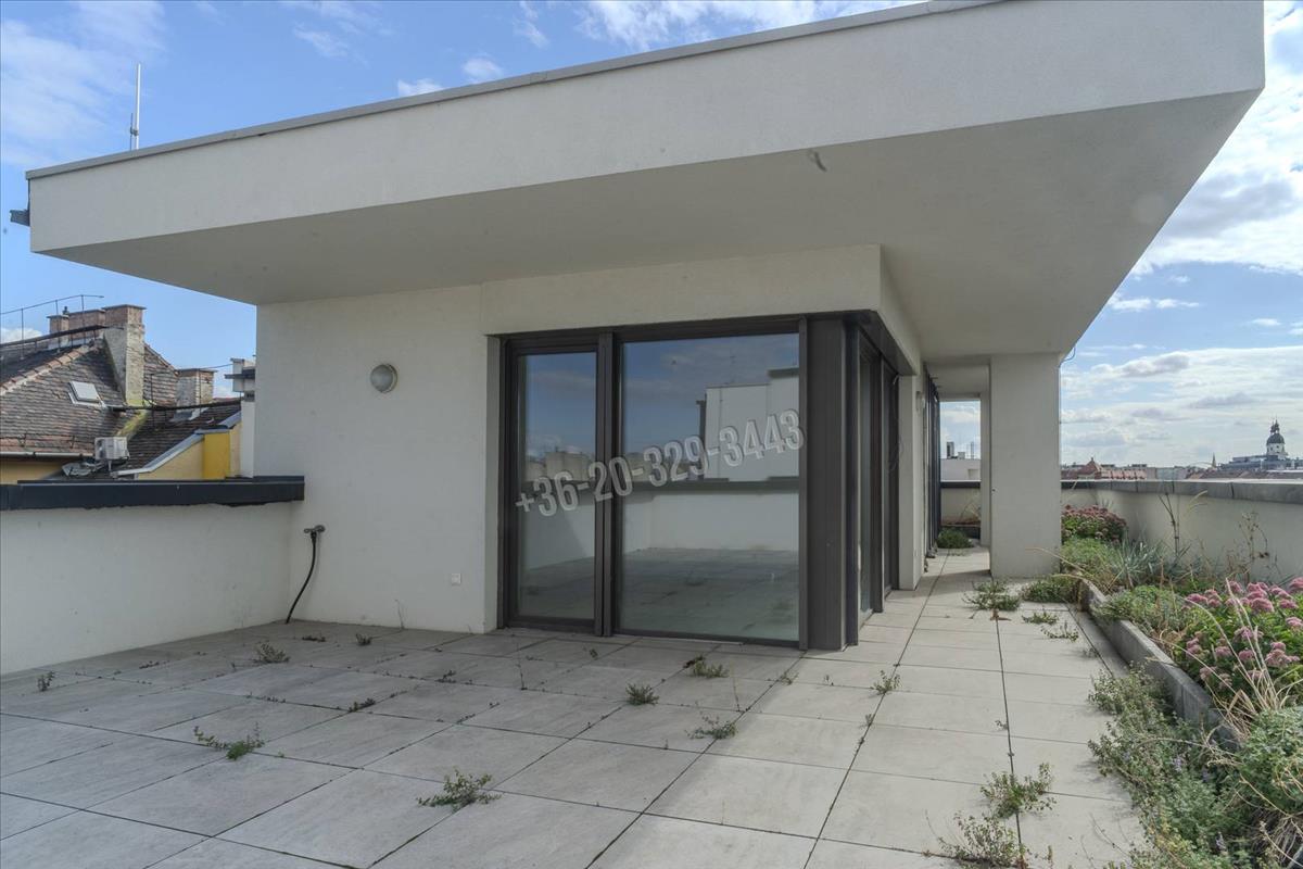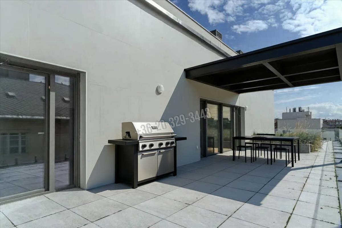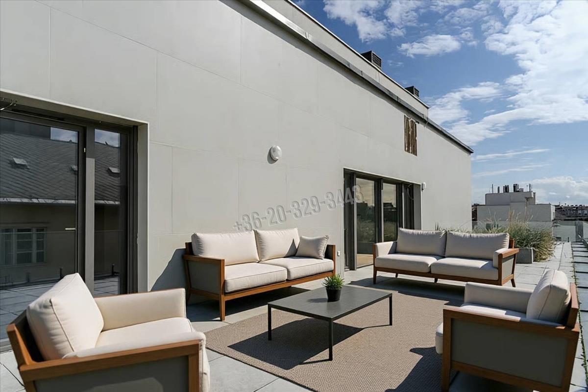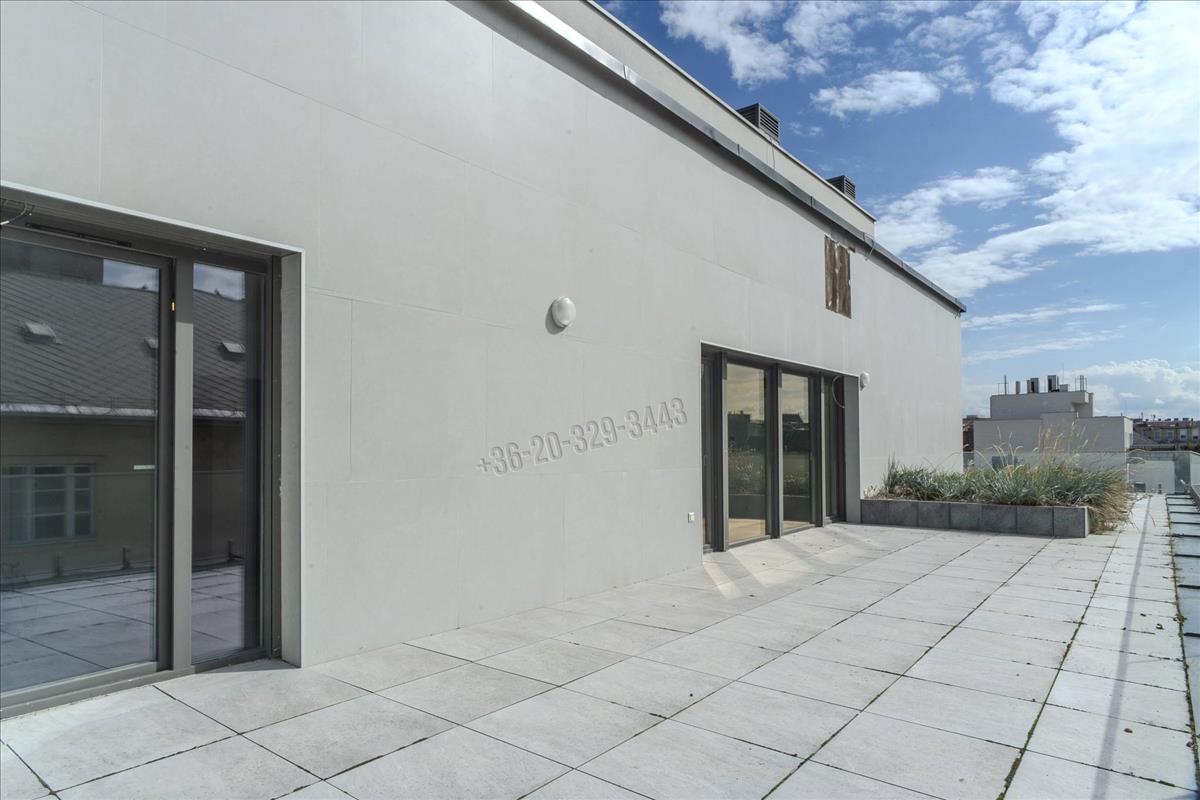 In Budapest, District viii, in the Csarnok neighborhood, a unique, two-level, 96 sqm apartment with exceptional features, built in 2023, is for sale with a 131 sqm terrace and balcony, in a penthouse condominium, at 90% completion.