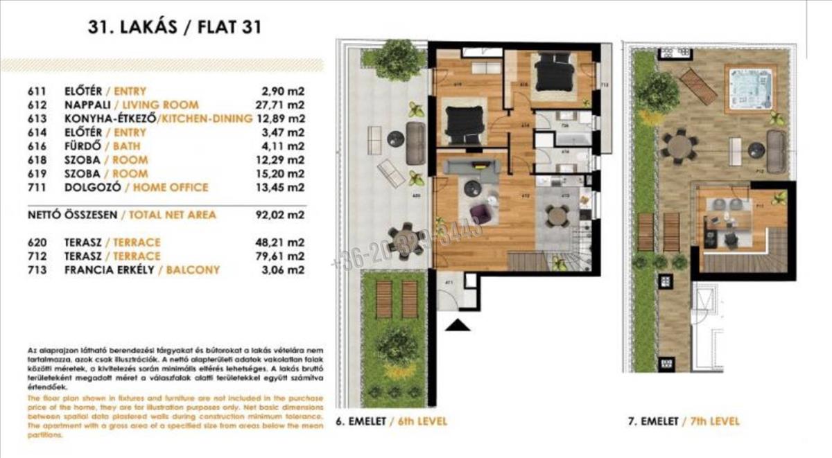 A lakás belső alapterülete 96nm, a teraszok+erkély összesen 131 nm. Így a lakás hasznos alapterülete 161, 5nm. Az ablakok elektromos redőny lehetőségével kiépítettek, csak magát a redőnyt kell beletenni, egyéni igényeknek megfelelően. Az ablakok 3 rétegű, kiváló minőségú nyílászárók, a bejárat 11 pontot záródó biztonsági ajtó. a lakások házközponti, hőszivattyús mennyezeti hűtés-fűtéssel ellátottak, minden helyiségben Icon termosztáttal, egyedi méréssel. a lakás 90%-s készültségi fokú, szaniterek, burkolatok, radiátorok hiányoznak még. Minden helyisége ablakos, páratlanul világos, napfényes, különleges atmoszférájú lakás. a nagy, panorámás ablakok és erkélyajtók, a több helyen meglévő kijárás az erkélyekre teszik rendkívülivé ezt a lakás.