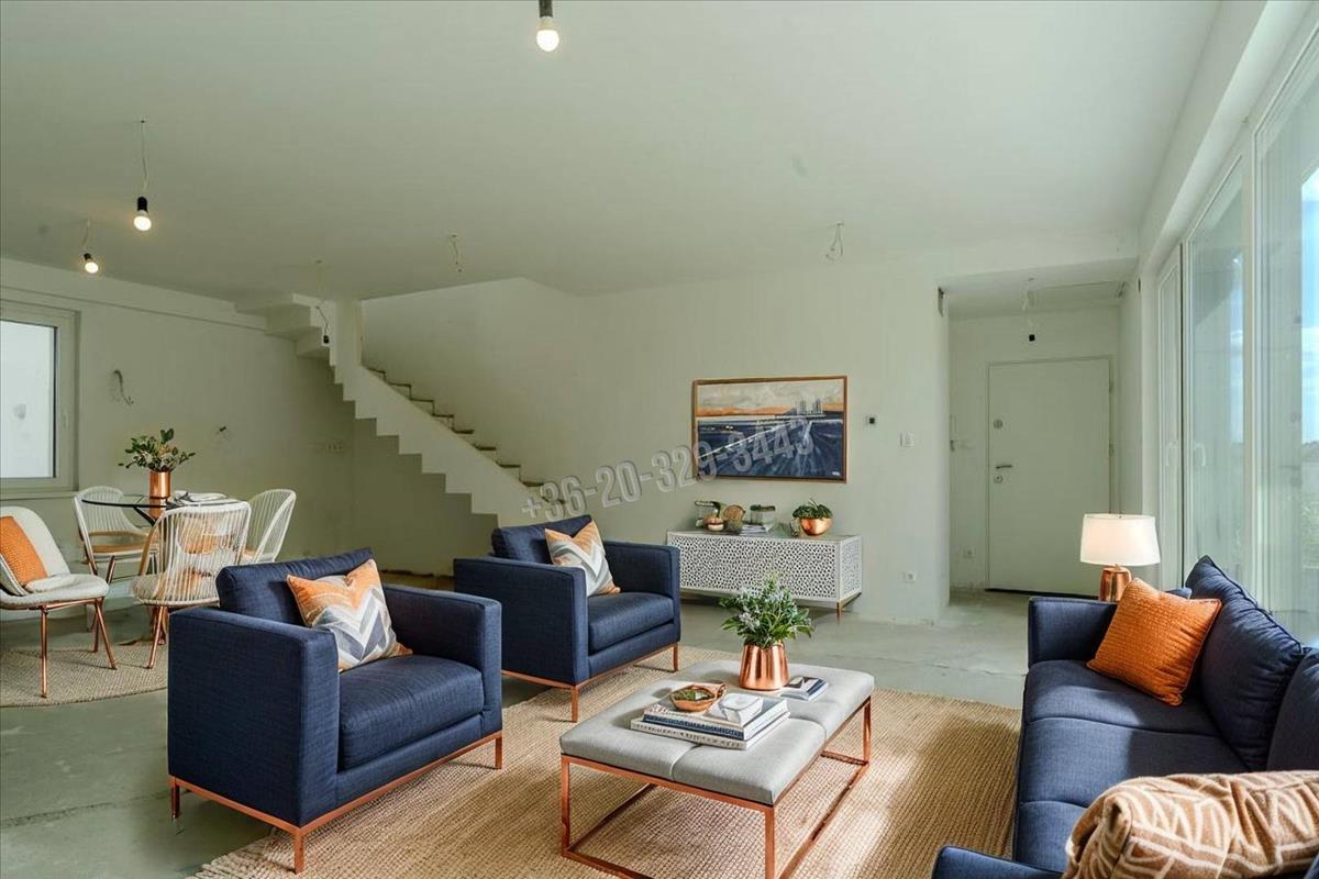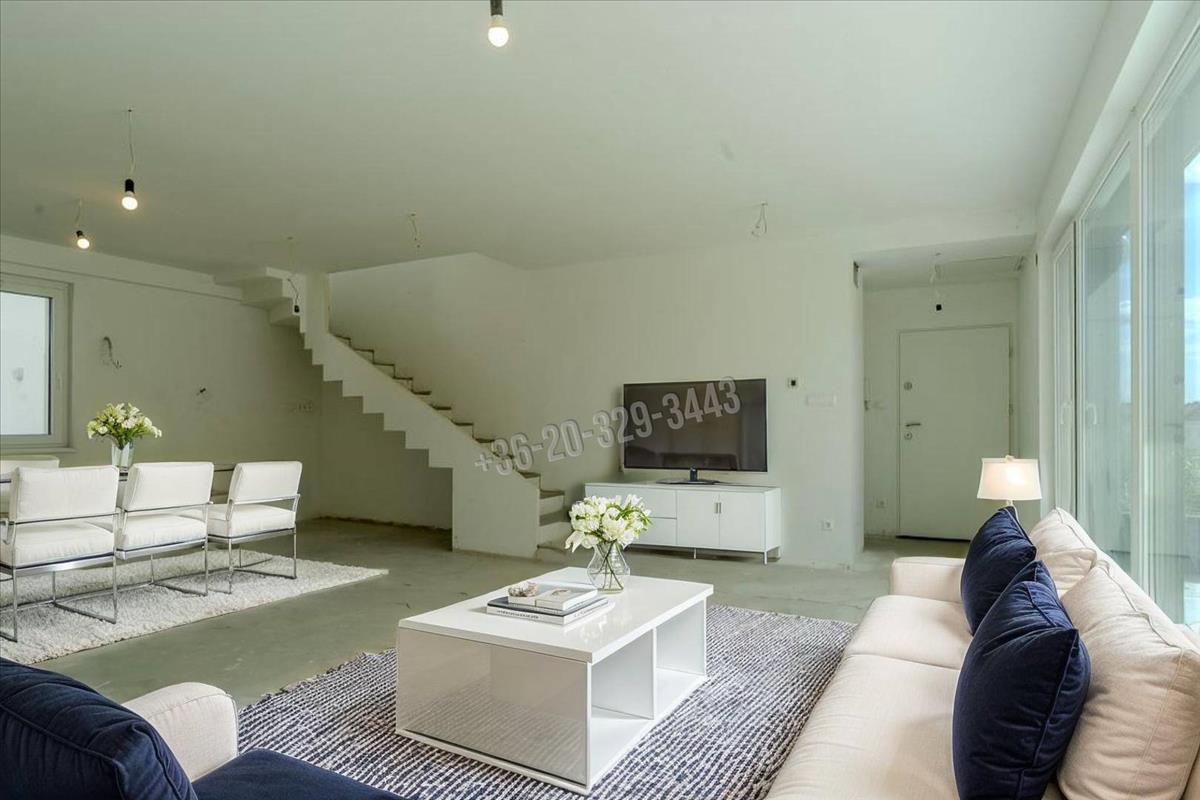 The internal floor area of the apartment is 96 sqm, with the terraces + balcony totaling 131 sqm. Thus, the useful floor area of the apartment is 161. 5 Sqm. The windows are prepared for electric blinds, just the blinds need to be installed based on individual preferences. The apartments are equipped with central ceiling cooling-heating with heat pump, each room with an Icon thermostat and individual metering. The apartment is at 90% completion, missing sanitary ware, tiles, radiators. Every room has windows, exceptionally bright, sunny, and has a unique atmosphere. The large panoramic windows and balcony doors, along with multiple accesses to the balconies, make this apartment outstanding.