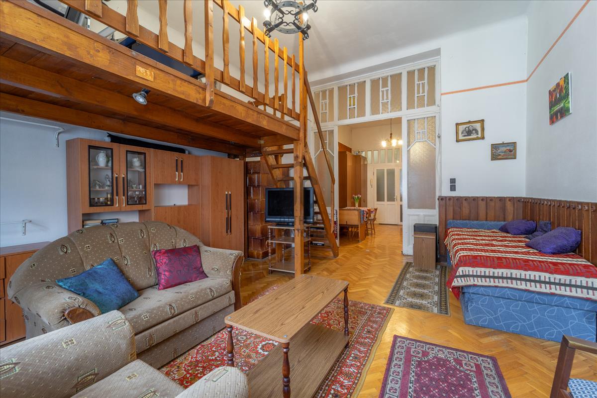 Az ingatlan három utcára néző, világos szobával rendelkezik, a nagy belmagasság igazi polgári hangulatot ad.