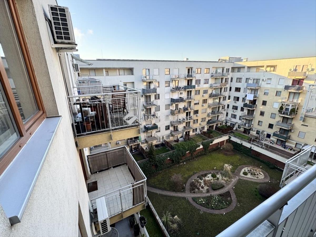 Az épület 2008-ban épült modern stílusú 7 szintes betonszerkezetű tégla kitöltő falazattal. a lakás egy 7. 11 Négyzetméteres erkéllyel rendelkezik, ahonnan a belső parkosított kertre nyílik a kilátás, melyre a nappaliból és az egyik szobából is ki lehet menni ill. Kiülve élvezni egy pohár bor társaságában a csendet és a látványt.
