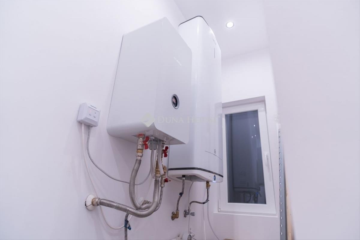 Kialakításra került egy külön háztartási helyiség is, beépített mosógéppel, szárítógéppel, mosdóval, elektromos kazánnal és 100 literes villanybojlerrel.