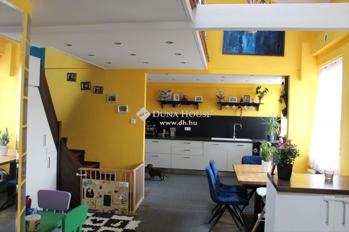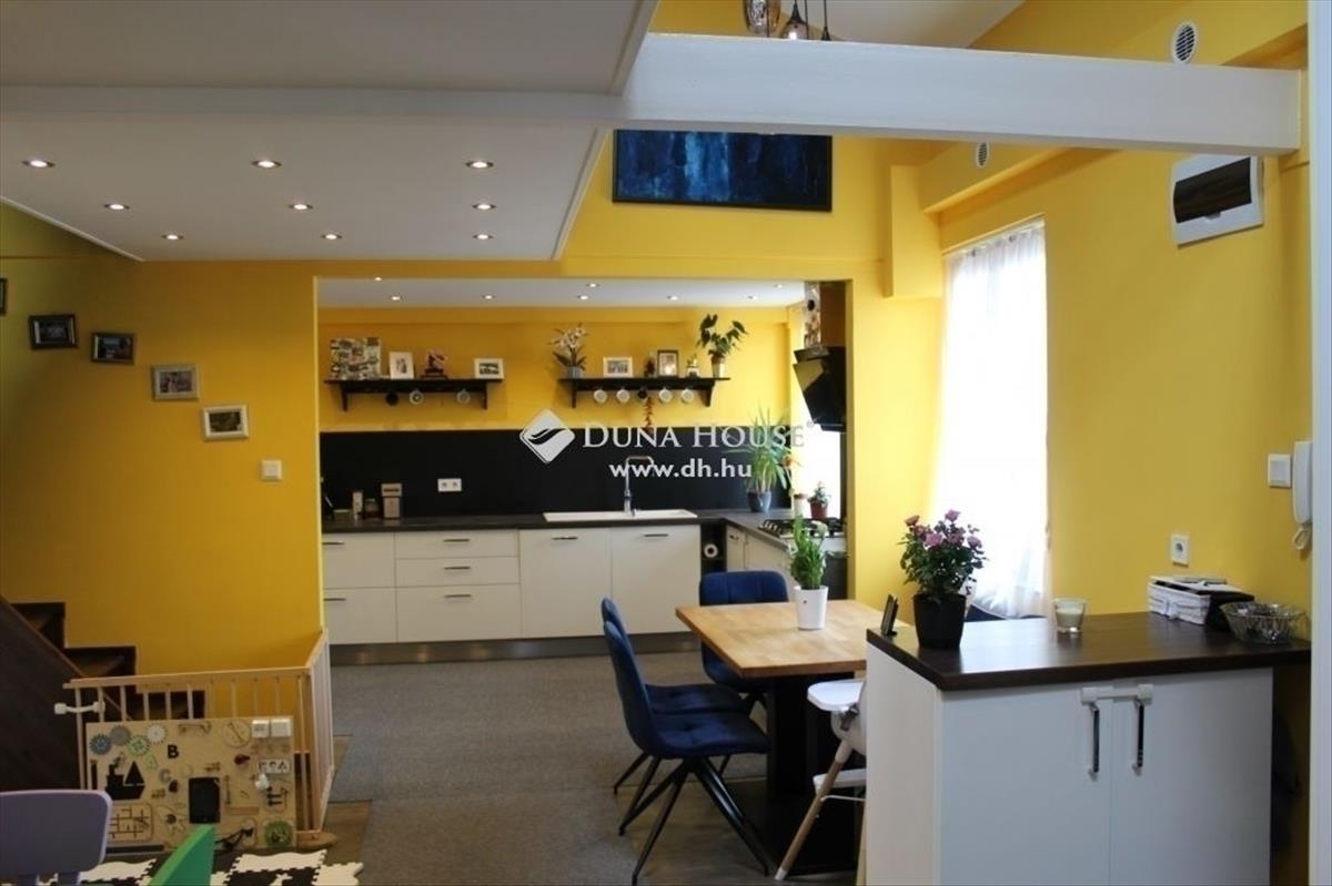 Különleges belső kétszintes lakás eladó a II. János Pál pápa téren! Eladásra kínálunk egy igazán egyedi hangulatú, 98 nm -es, belső kétszintes lakást Budapest 8. kerületének közkedvelt részén, a II. János Pál pápa téren, kiváló infrastruktúrával és tömegközlekedéssel. a lakás földszintjén egy tágas, világos nappali, egy nagy étkező és egy különleges, 24 nm -es modern konyha kapott helyet. a konyha teljesen felszerelt, gépesített, beépített szekrénysorral, amelyben minden konyhai eszköz, sőt a hűtő is rejtve van, így az elegáns megjelenés garantált. a földszinten található továbbá egy külön szoba, amely akár második nappaliként vagy vendégszobaként is funkcionálhat, valamint egy különleges kialakítású fürdőszoba, melyet félköríves, üvegtéglás fal határol. Ez nemcsak esztétikus, de lehetővé teszi a természetes fény beáramlását, miközben megőrzi a privát szférát – a lakás igazi ékköve! Az emeletre felérve a tetőtér beépített részén egy 24 nm -es nappaliba érkezünk, amit jelenleg két funkcionális térre – hálószobára és dolgozószobára – osztottak, de igény szerint könnyedén visszaalakítható egy légtérré. Ezen a szinten egy külön szoba is található, amely hálószobaként vagy gyerekszobaként is kiválóan használható. a lakás állapota kifogástalan: frissen festett, folyamatosan karbantartott, így az új tulajdonos azonnal költözhet. a praktikumot tovább növeli a lépcső alatti beépített szekrény, valamint a földszinti szobában található gardrób, amelyek sok extra tárolóhelyet biztosítanak. Ez a lakás egyedi kialakításának, nagy alapterületének és praktikus elrendezésének köszönhetően tökéletes választás akár családoknak, akár otthoni irodát keresőknek. Ne maradjon le róla, jöjjön el, és nézze meg személyesen!