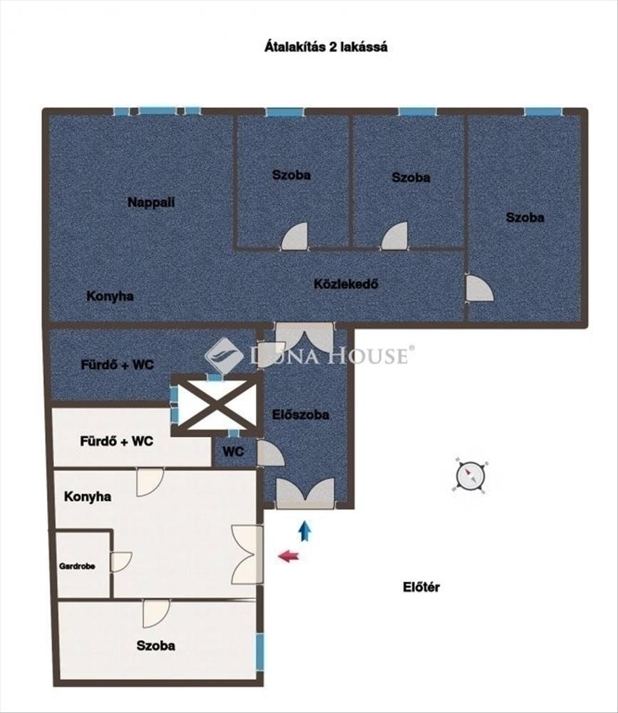A lakás jelenleg is két bejárattal rendelkezik, ami kiváló alapot ad az átalakíthatósághoz.