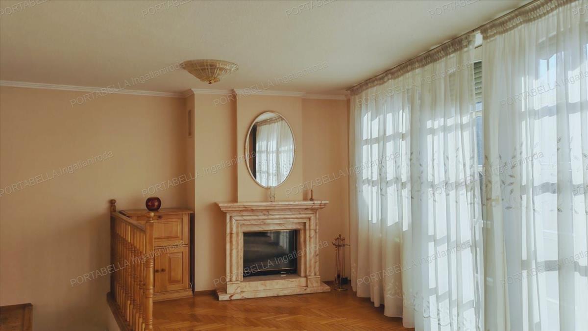 The 95-square-meter, two-level apartment, with a terrace on the second floor and a balcony on the first floor, offers a unique panorama of Gellért Hill. The spacious American-style kitchen-dining area is the perfect venue for family meals, while the living room and two separate bedrooms provide comfortable living space. The apartment boasts high-quality construction: the French pink marble fireplace and oak parquet elevate the apartment to a luxury level. The professional oven and cooktop guarantee culinary experiences.