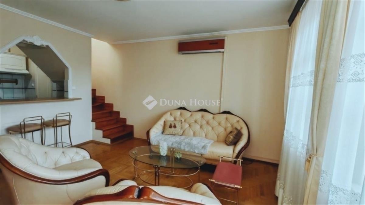 Palotanegyedben eladó egy duplex, tetőteraszos és erkélyes lakás, gyönyörű, belső parkkal rendelkező 2002-ben épült TÁRSASHÁZBAN! Az ingatlan tulajdoni lapon 95 négyzetméteres. Két szintes. Az alsó szinten konyha, nappali, kamra, wc, fürdőszoba és egy kis háló található. a nappali erkélyes. a felső szinten egy tágas szoba kandallóval és egy nagy terasszal ad élményt a tulajdonosoknak. Minden nyílászáró műanyag és redőnyös! Az ingatlan szép napos és panorámás a kilátás! a fűtést és meleg vizet cirkó kazán biztosítja. Mind a kettő szint klimatizált! a lakás a teljes bútorzattal együtt eladó! a társasház egy különleges épület az utcában. Belső kertje, parkja van szökőkúttal. Lakóközösség nagyon jó! Az épületnek van saját garázsszintje, de sajnos ehhez a lakáshoz már nincs meg a garázs. Parkolási lehetőség az utcán megoldható. Kérem keressen bizalommal bárminemű kérdése van az ingatlannal kapcsolatban! Ajánlom Mindenkinek aki szépérzékkel rendelkezik és a belvárosi életet habzsolja.