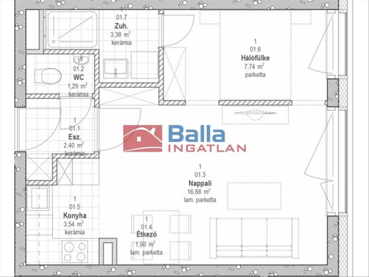 30 lakás és egy üzlet kerül kialakításra, melyekhez 32 db parkolóhely kapcsolódik.