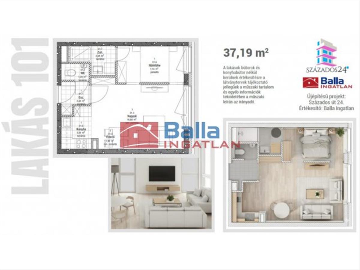 101 Lakás - 37, 19 nm erkély nélkül.