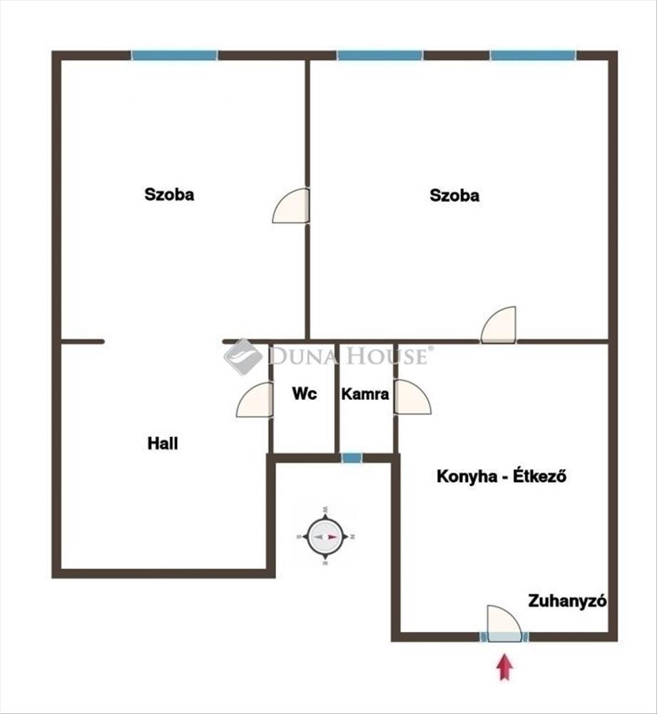* Elrendezés: 2 külön nyíló szoba + hall + étkezős konyha + kamra + külön WC