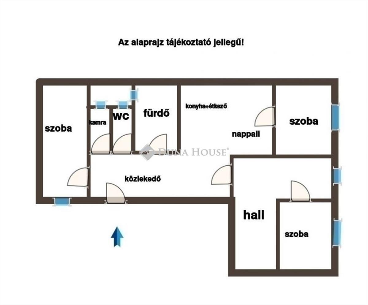 Az ingatlanba belépve az előszobából balra nyílik egy lakószoba, a tágas közlekedőből nyílik a kamra, a fürdőszoba, a wc, a jelenlegi tulajdonos átalakításának köszönhetően a 26, 7 m2-es amerikai konyha+nappali étkező a családi élet színtere lehet, ezenkívül, hálószoba, gyerekszoba, és egy lakószoba került kialakításra.
