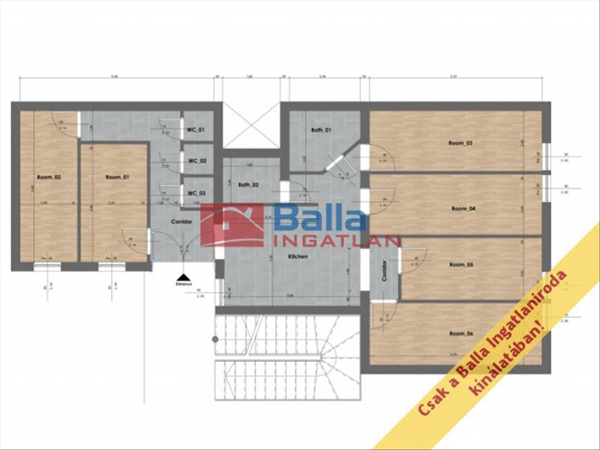 - 6 (4 egész és 2 fél) teljesen külön bejáratú, szeparált, zárható szobássá van kialakítva, ebből 4 utcai fekvésű,