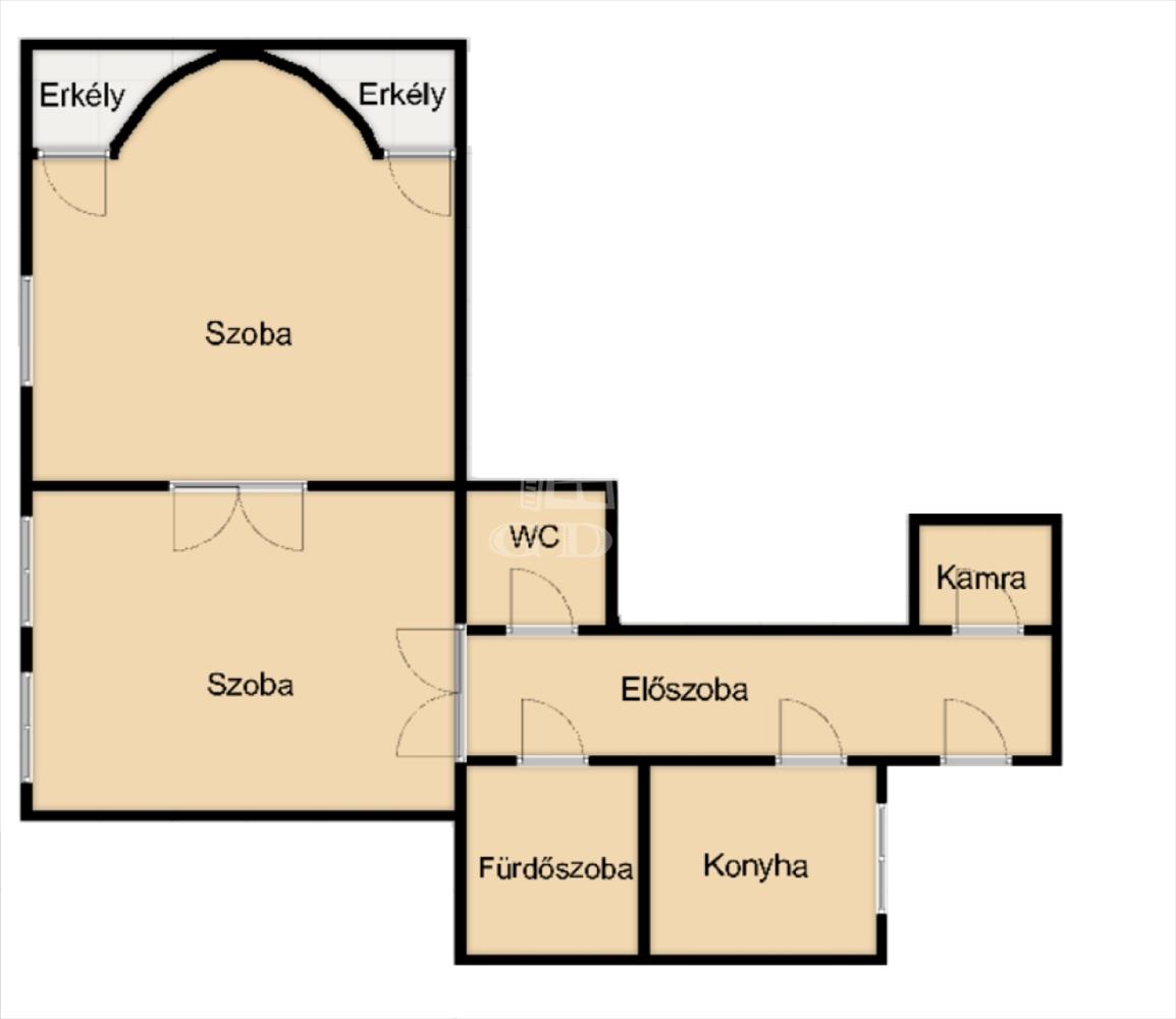 Az ingatlan jelenlegi kialakítása két szobából áll, azonban a kedvező alaprajznak köszönhetően akár három hálószobás elrendezés is könnyedén megvalósítható, így rugalmasan igazítható saját lakhatási vagy befektetési elképzelésekhez.