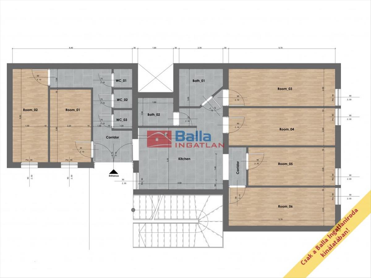 - 6 (4 egész és 2 fél) teljesen külön bejáratú, szeparált, zárható szobássá van kialakítva, ebből 4 utcai fekvésű,