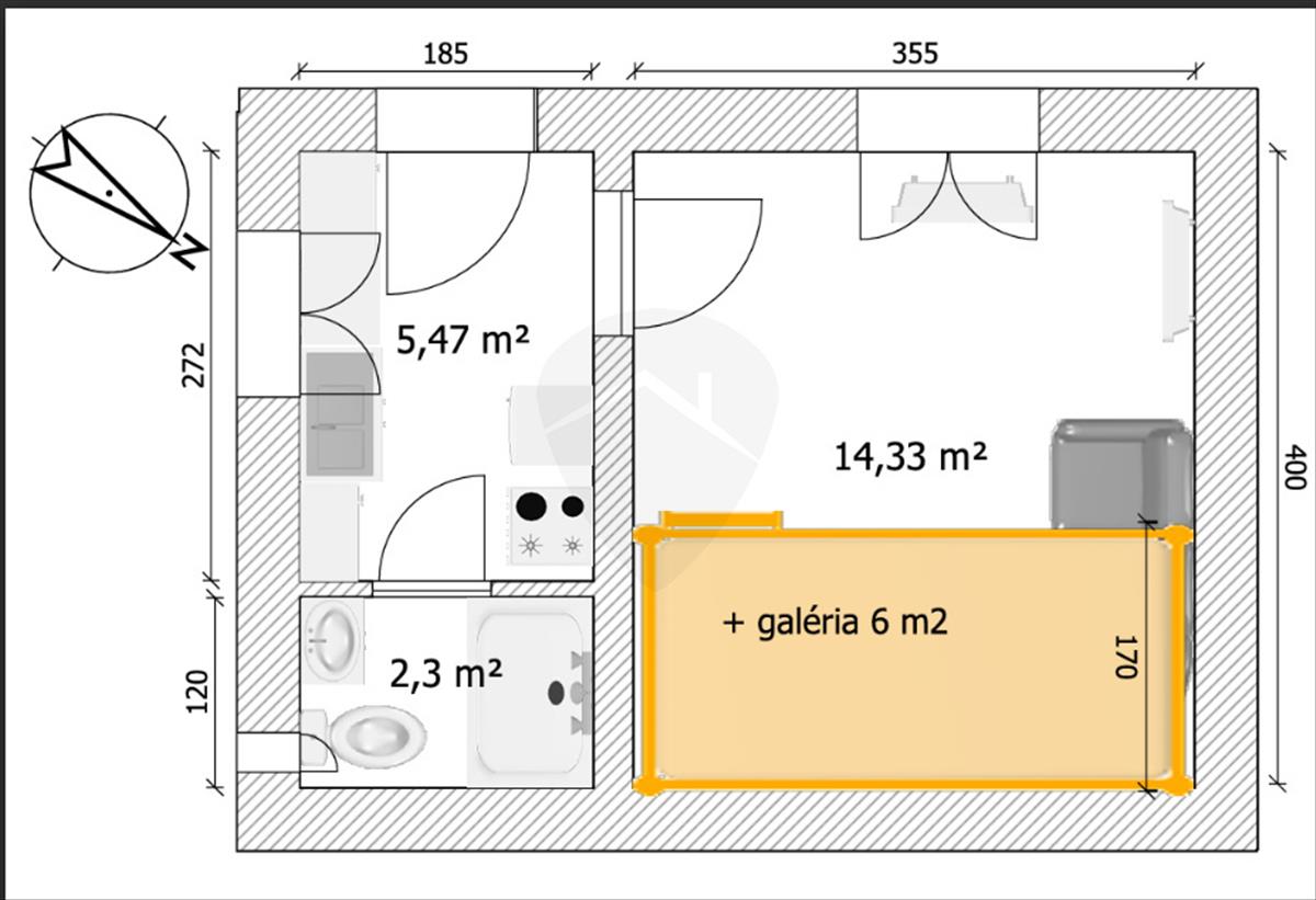A szobában 6 nm -es galéria került beépítésre, így a lakótér funkciói jól elkülönültek. Kényelmes alvótér, dolgozó rész, nappali egy helyen.
