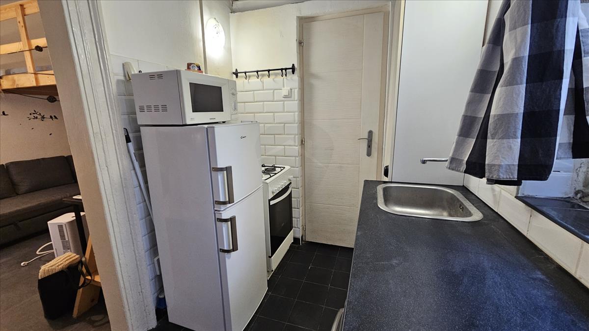 A társasház udvarán levő önálló kis ház nappalival, konyhával és fürdővel felszerelt.