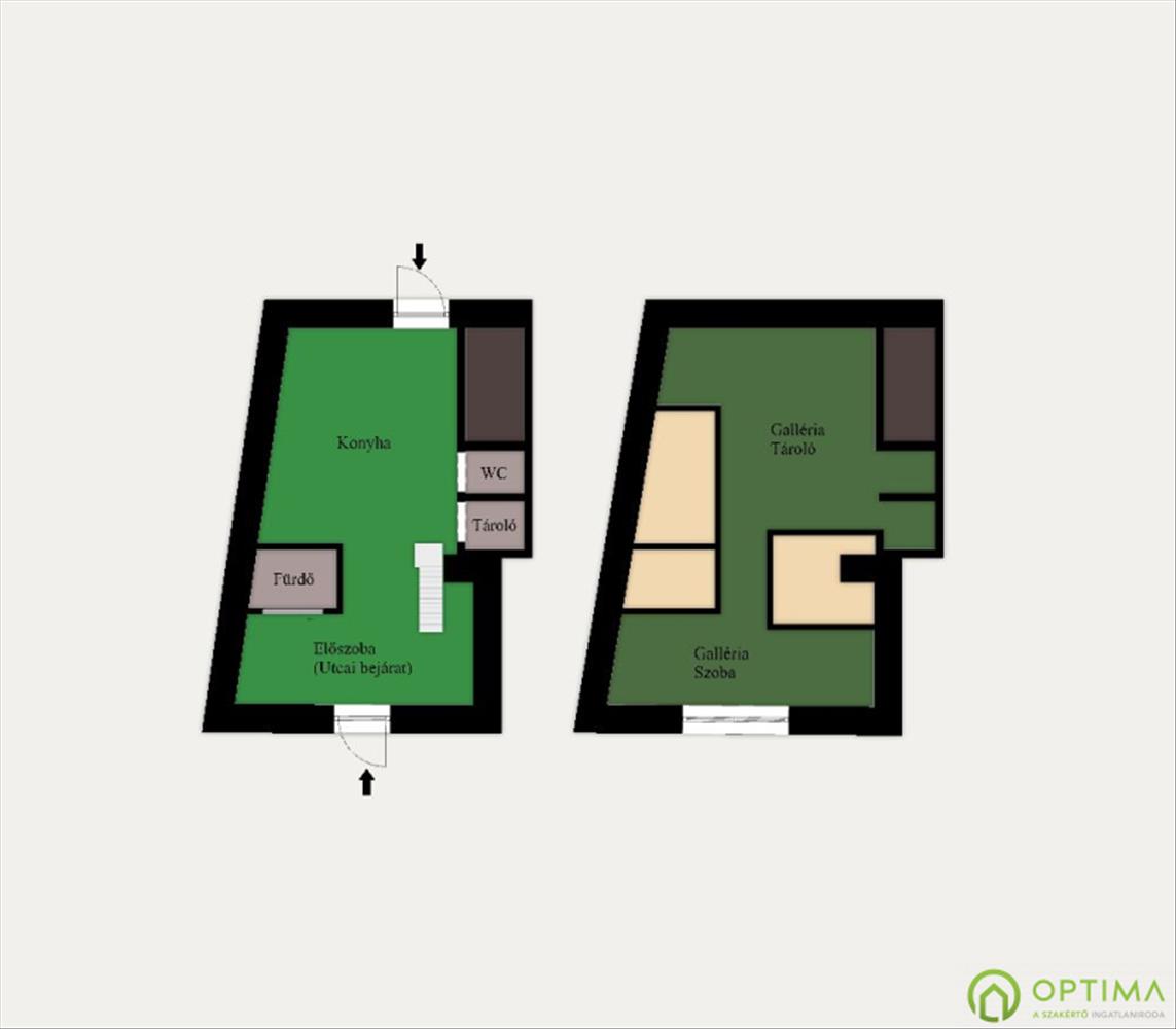 Az ingatlan két bejárattal rendelkezik. Az egyik a lépcsőházból, a második bejárat az utcáról megközelíthető, így kiváló lehetőséget nyújt a kis vállalkozásunk fészkének kialakításához.