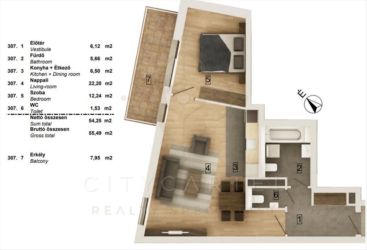 A liftes társasház 3. emeletén található, 55, 49 nm-es, (54, 25 nm lakás 7, 95 nm terasszal) 3 szobás lakás korszerű hőszivattyús fűtés–hűtéssel és teljes körű okosotthon-rendszerrel felszerelve várja új tulajdonosát. a burkolatok még választhatók, így a leendő tulajdonos saját ízlésére szabhatja az ingatlant.