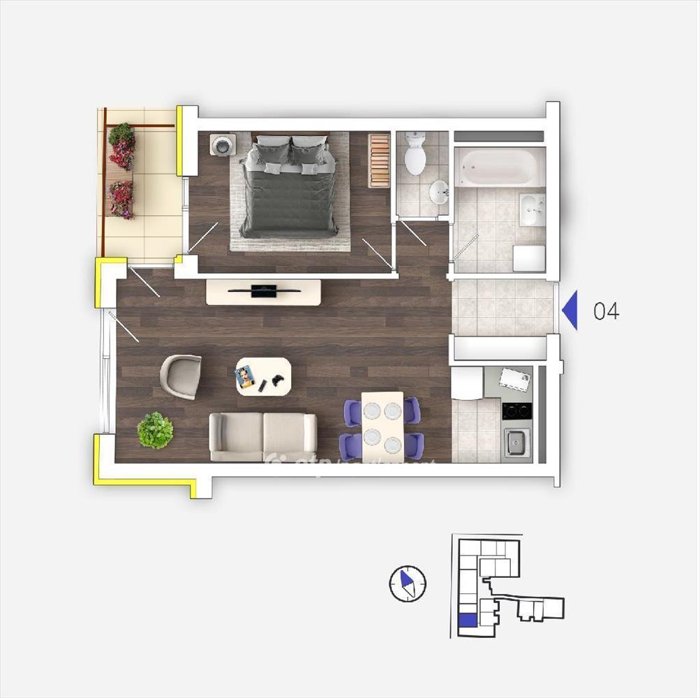 A lakások amerikai konyhás nappalival és terasszal/erkéllyel rendelkeznek.