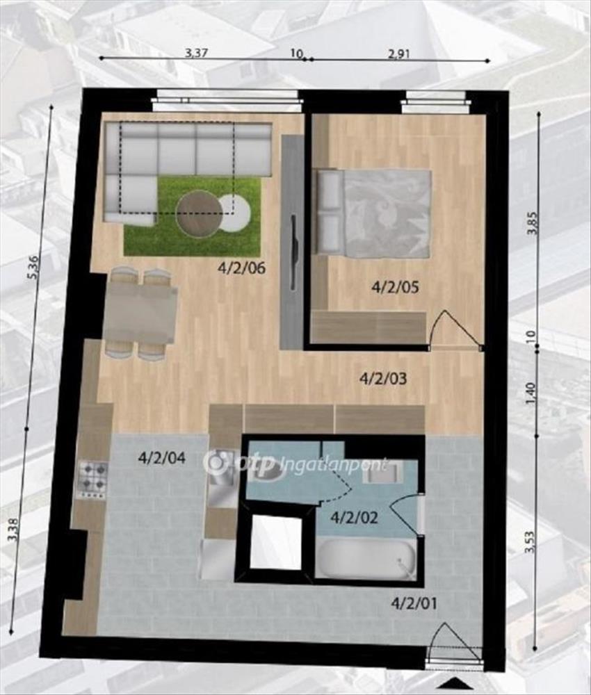 Ez az ingatlan 54 négyzetméteres, 2 szobás és tartozik hozzá egy 6, 38 négyzetméteres saját tároló is.