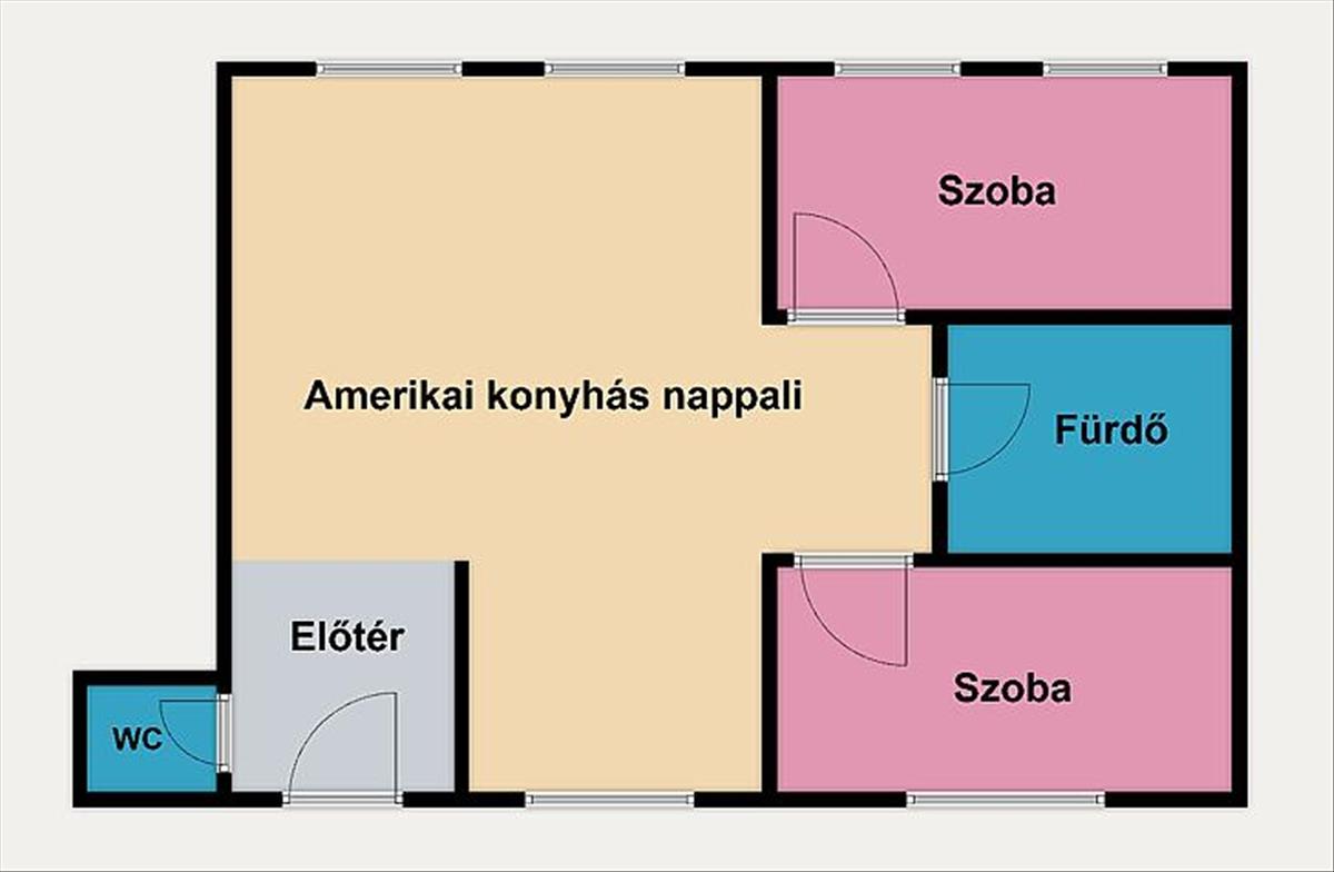 A lakás amerikai konyhás nappaliból, valamint két külön nyíló, kényelmes méretű szobából áll. Az elosztása praktikus, jól élhető terekkel rendelkezik. a fűtést házközponti rendszer biztosítja, a havi közös költség 19. 900 Ft.