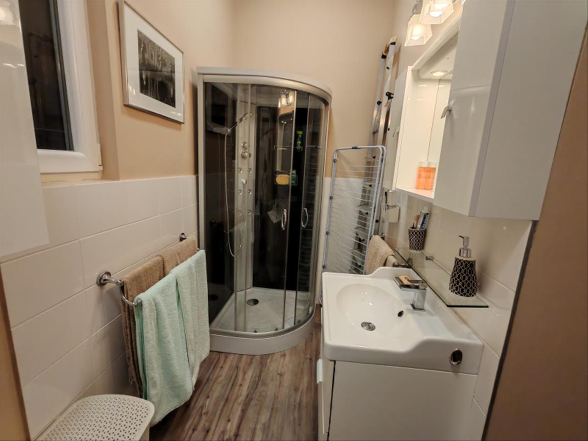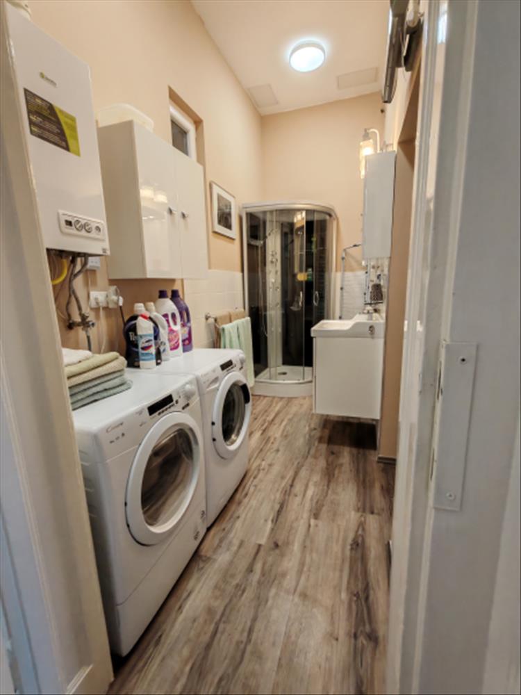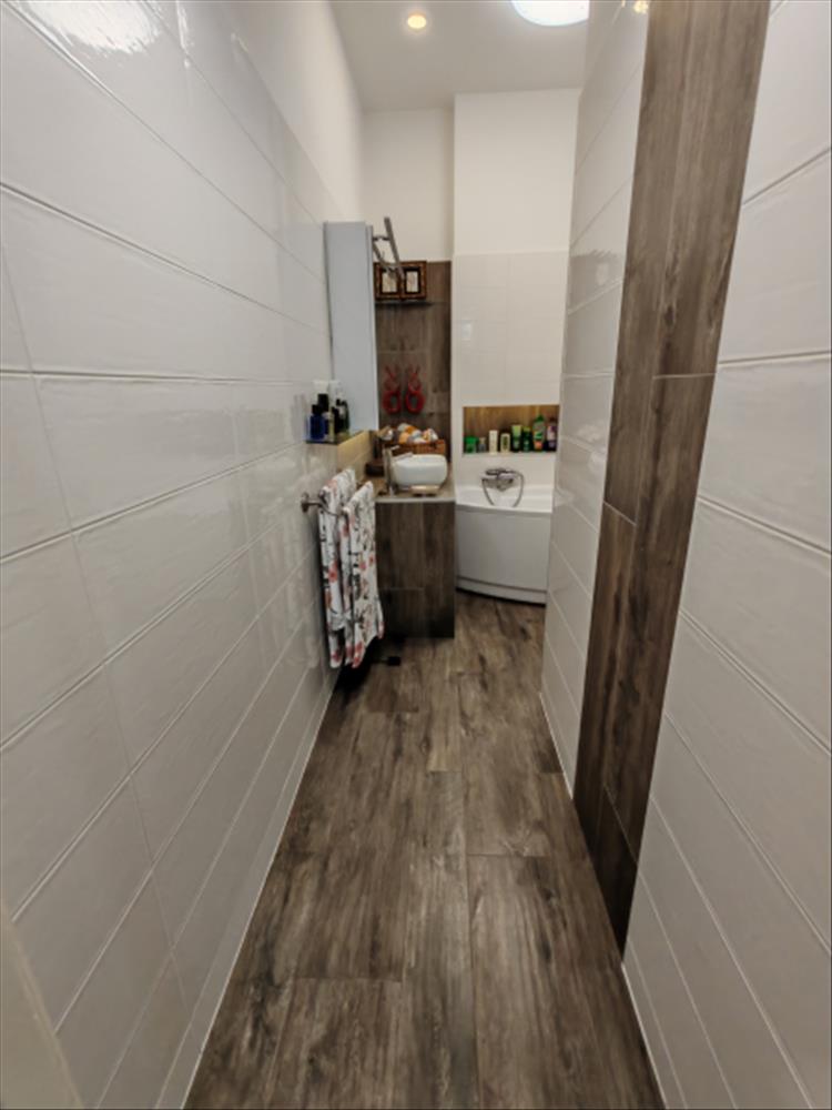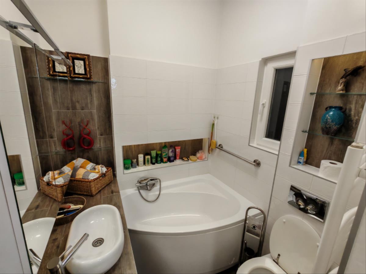 A rendezett, folyamatosan karbantartott ház 3 emeltén található lakás dupla komfortos. Egyik fürdőszobája kádas, míg a másik zuhanyozós. Wc a fürdőben és külön bejárattal is található.