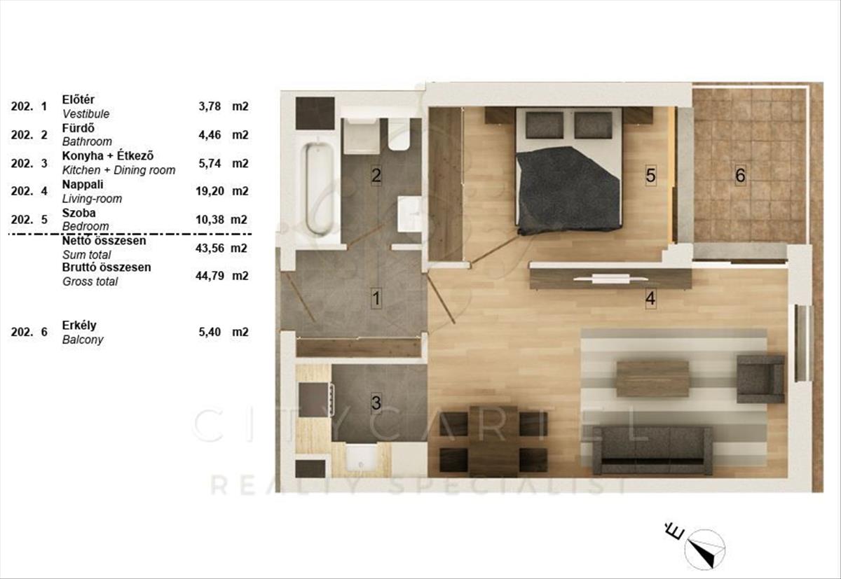 - Alapterület:46 m2