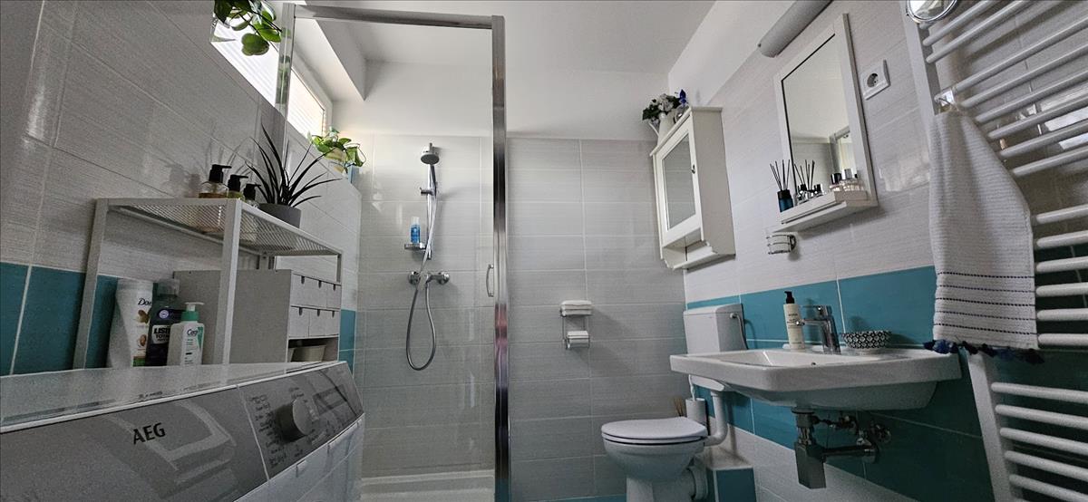 💦 a fürdőszobában nagy előny, hogy ablakkal rendelkezik, amely a napfényen kívül, a szellőztetést is megoldja, de van időzített, központi szelőzőrendszer is.