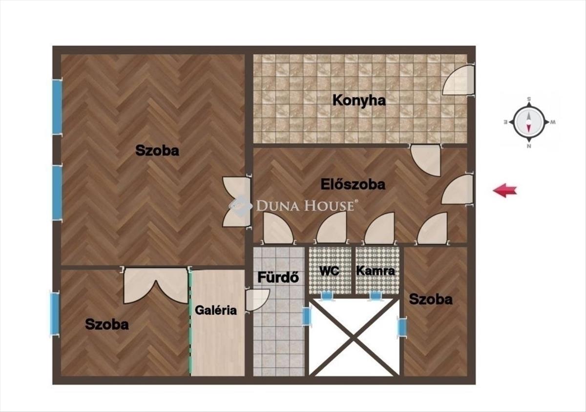 Az ingatlan keleti tájolású, csendes utcára néz, jó fényviszonyokkal rendelkezik. a nagy belmagasság jól kihasználható, a kisebbik szoba galériázott, ami tovább növeli a lakás használati értékét.