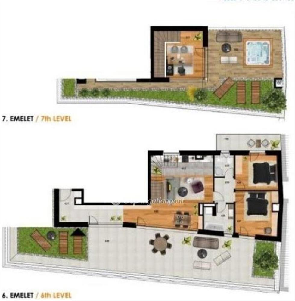 Különleges penthouse lehetőség Budapest VIII. kerületének folyamatosan fejlődő részén, a Csarnok negyedben, a Körúthoz, Blahához közel. a 2023-ban épült, liftes, 54 lakásos társasház igényes anyaghasználattal, aa++ energetikai besorolással és korszerű hőszivattyús hűtés-fűtési rendszerrel valósult meg, ahol a hőleadás padlóban és mennyezetben történik, így a fenntartás rendkívül kedvező. a kínált ingatlan belső kétszintes, 93 m2 lakóterületű, 4 szobás, nyugati fekvésű lakás, amelyhez összesen 131 m2 terasz és egy 7, 6 m2-es erkély tartozik. Különlegessége, hogy mindkét szint saját teraszkapcsolattal rendelkezik, így a lakás minden szinten erős kültéri kapcsolódást biztosít. a felső teraszokról tágas, levegős városi panoráma tárul elénk, ahonnan a Gellért-hegy, a Budai-hegység vonulata és a Hármashatár-hegy látványa is élvezhető, tovább erősítve a valódi penthouse-életérzést. a közös költség 50. 400 Ft, amely már tartalmazza a hűtés-fűtés és a vízdíj költségét is. a lakás nem kulcsrakész, viszont teljesen szerkezetkész állapotban van: a gépészet, vezetékek és a fűtési rendszer kiépítve, így a végső kialakítás, burkolatok, szaniterek, konyha már egyéni ízlés szerint valósítható meg. a meglévő tervek alapján kb. 20 Millió Ft ráfordítással prémium szinten befejezhető. a vízellátású teraszok pergolával, zöldfelülettel, lounge-résszel, akár jacuzzival is kialakíthatók. Befektetői szempontból is kivételes lehetőség. Mélygarázs-beálló 8 M Ft-ért vásárolható.