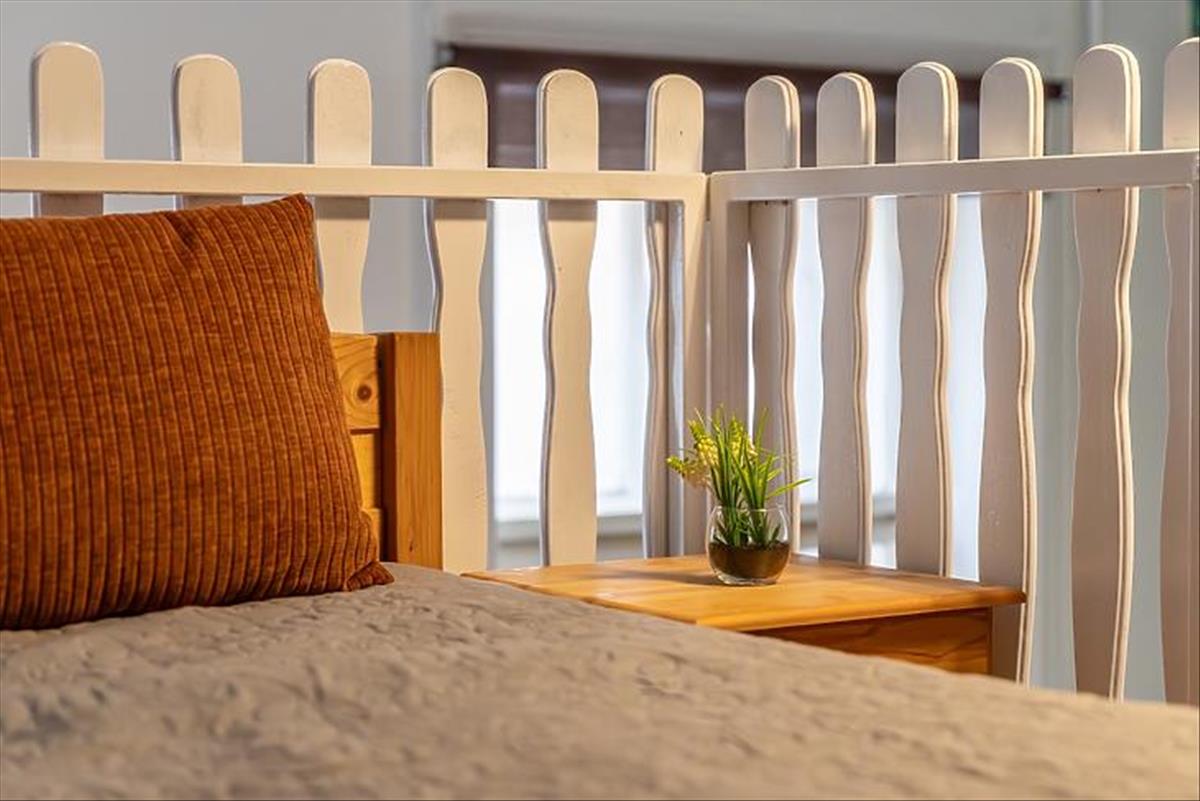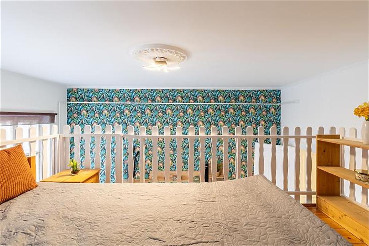A két ablakos szoba igény szerint leválasztható, jelenleg a 3, 65 m belmagasságot kihasználva hálógaléria került kialakításra.