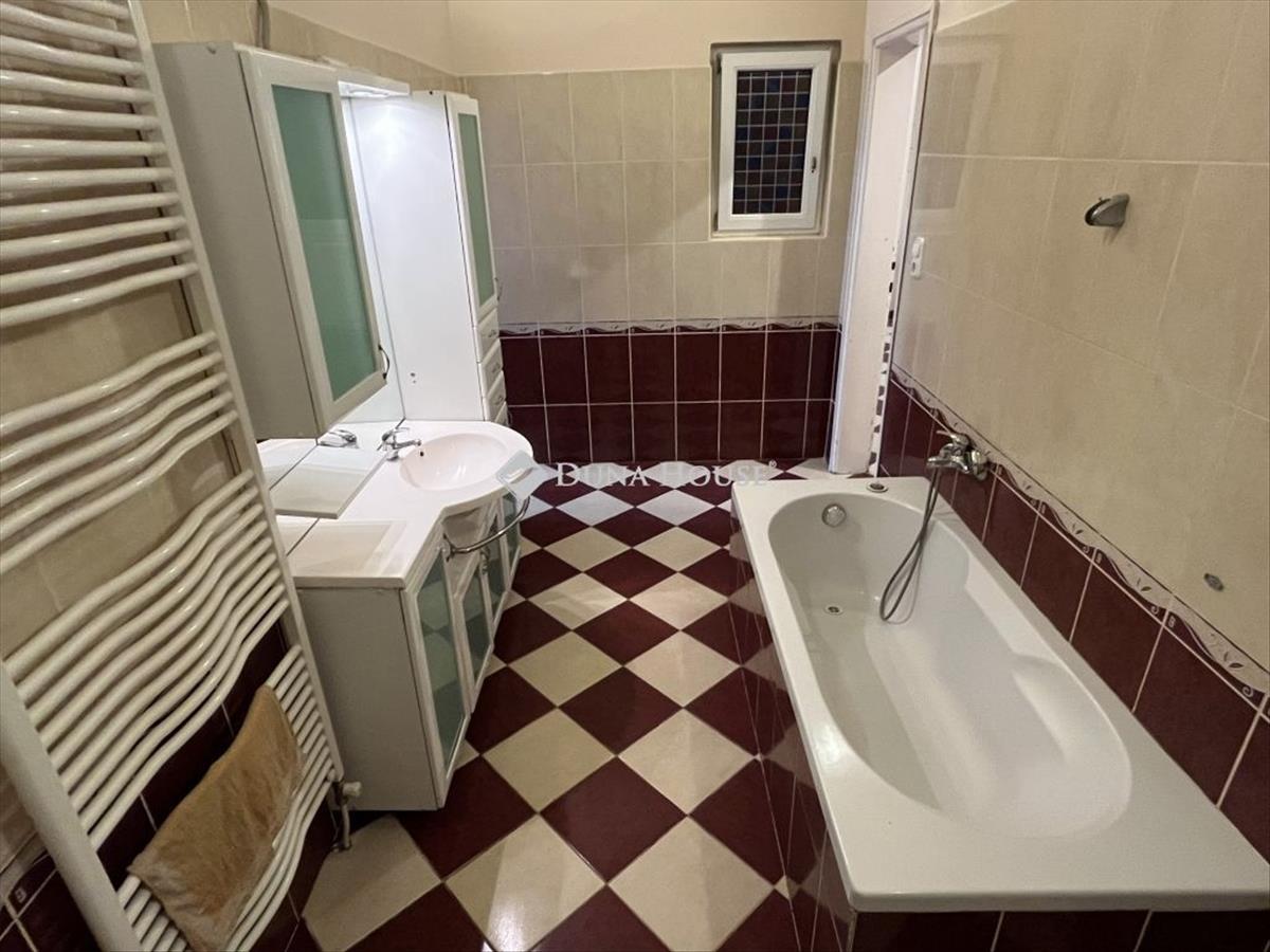 A fürdőszoba kifejezetten tágas, külön WC-vel, a konyha és étkező egy légtérben kapott helyet, így a mindennapok és a vendégfogadás is kényelmesen megoldható.