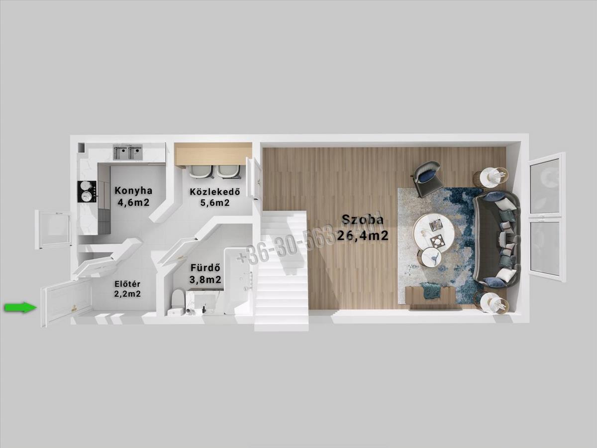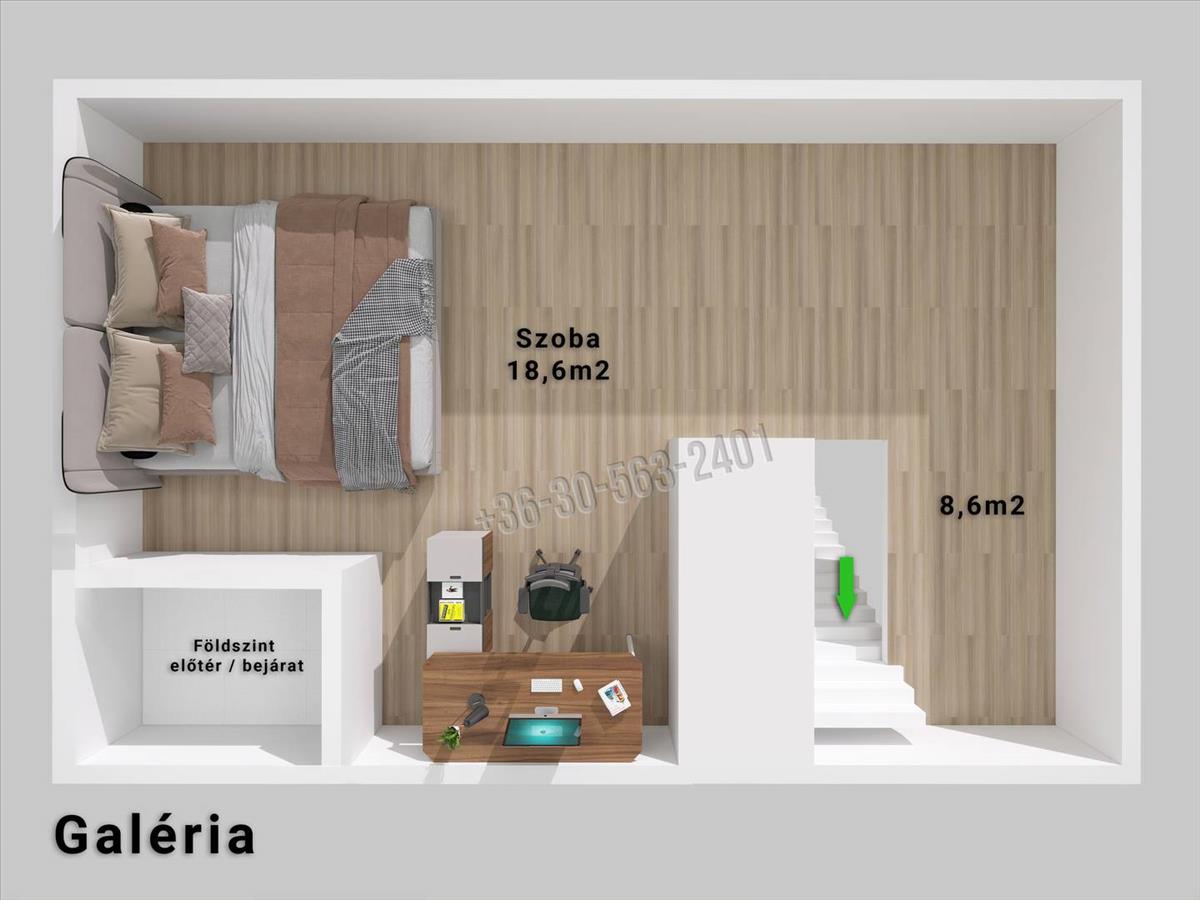 A lakás földszinti elhelyezkedésű, tulajdoni lap szerint 38 m²-es, de a galériás kialakításnak köszönhetően a valós alapterület közel 64 m². a galéria belmagassága körülbelül 210 cm, így nem csupán tárolásra, hanem teljes értékű élettérként használható.