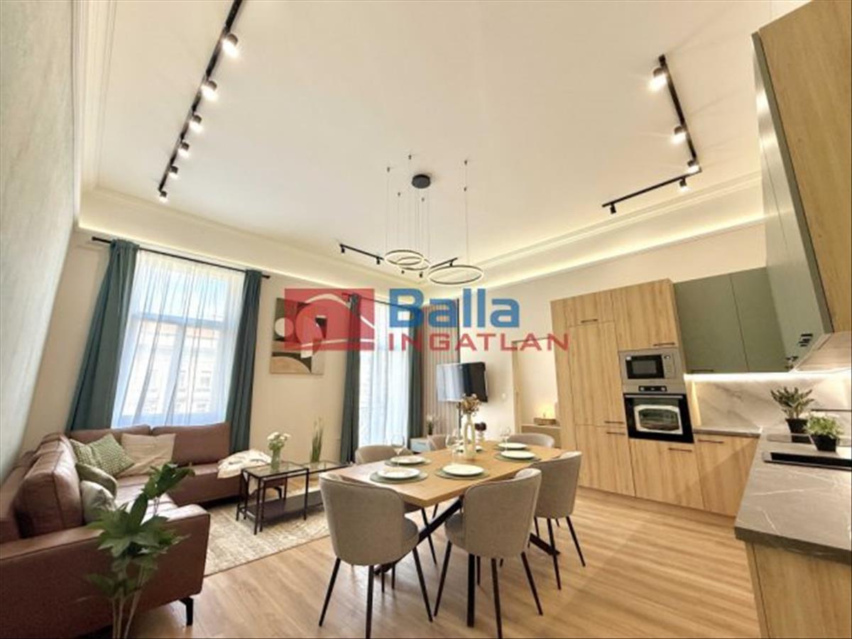 Ez az igényesen felújított, dupla erkélyes lakás a liftes épület 5. emeletén helyezkedik el. a nagy alapterületnek és belmagasságnak köszönhetően tágasabb a térérzet. a szín és anyag használat kifinomultsága tükrözi a tervező által megálmodott szabadság hangulatát. a komfortosságát növeli, hogy 3 fürdőszoba található. Ez a szép otthon klímával felszerelt, cirkó fűtéssel rendelkezik.