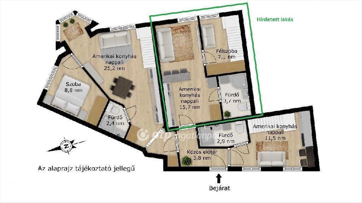 Az ingatlan teljes körűen felújított, modern kialakítású terekkel rendelkezik, design bútorokkal berendezve. a bejáraton túl egy 3, 8 nm-es, közös használatú előtérből nyílik a lakás. a nagy ablakoknak és a keleti tájolásnak köszönhetően rendkívül világos. a gépesített konyha a mindennapi használatot maximálisan kiszolgálja, a fűtésről és hűtésről korszerű hűtő-fűtő klíma gondoskodik. a vadonatúj ajtók, valamint a hő- és hangszigetelt, nyílászárók nyugodt, komfortos lakókörnyezetet és napfényes belsőt teremtenek a belvárosi elhelyezkedés ellenére is. a kisebbik szobában a fürdőszoba felett egy hálóként funkcionáló, 170 cm magas, 7 nm-es gyönyörű galéria került kialakításra.