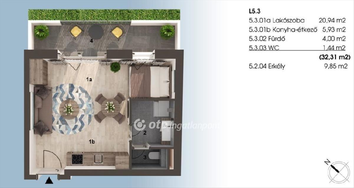 - Alapterület:32 m2