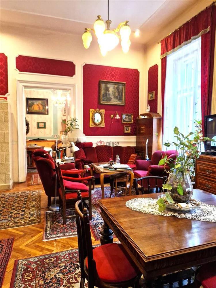 Az ingatlan alapterülete 99 nm, amelyben 3 tágas szoba és egy félszoba található, így bőséges teret biztosít a család minden tagjának. a nagy belmagasság (4, 20m) pedig nemcsak esztétikai élményt nyújt, hanem a légies, világos atmoszféra megteremtésében is segít. Az ingatlan közepes állapotú, így lehetőséget ad arra, hogy új tulajdonosa saját ízlésének megfelelően alakítsa ki a belső teret, bár a jelenlegi különleges nagypolgári stílus már most is egyedi megjelenést biztosít a lakásnak. a fürdőszoba praktikus elrendezésű, amely a család kényelmét szolgálja. a fűtés cserépkályhával megoldott, ami nemcsak hangulatos, hanem gazdaságos is. a lakásban konvektor is van, ezt nem használjak jelenlegi lakói, mert a cserépkályha befűti az egész lakást. a lakást 10 éven belül újították fel jelenlegi állapotára. Ekkor kicserélték a villany, víz és gázcsöveket is. Ezt egyébként a ház is megtette a főbb vezetékekkel. a lakás rendkívül csendes, mivel az utolsó felújítás alatt az üvegeket termoüvegekre cserélték, így az utca zajából semmit se lehet az első emeleten hallani. Két hálószobában jelenleg galéria is található.