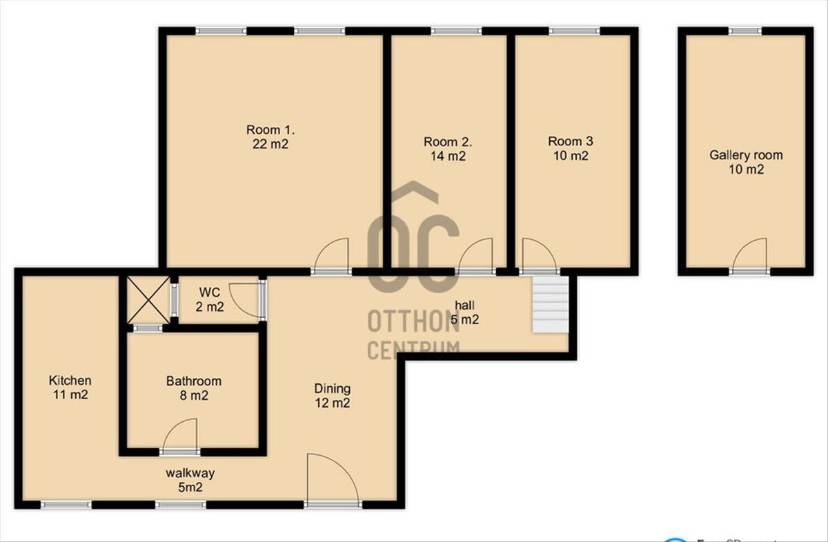 A 90 m² alapterületű ingatlanhoz tartozik egy további 9 m²-es felső szinti szoba, így a lakás praktikusan 4 külön nyíló szobával rendelkezik. Az elrendezés ideális hosszú távú bérbeadásra, munkásszállásnak, diákoknak vagy többfős bérlői struktúrára.