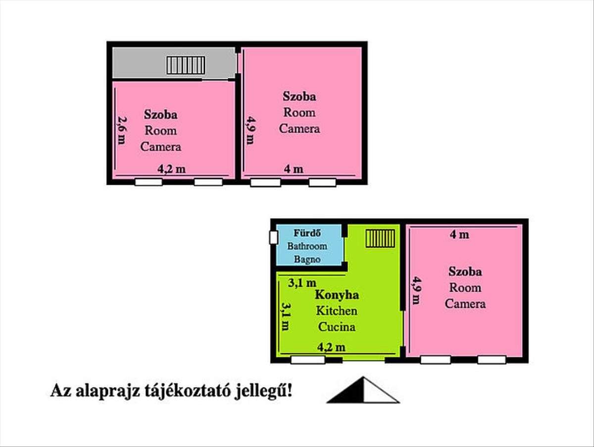 Palotanegyedben, lifttel rendelkező társasházban, jó állapotú, három szobás lakás eladó.Tulajdoni lap szerint 40 m2-es a lakás, viszont a belmagasságot kihasználva, egy felső szint lett kialakítva, így a felhasználható hasznos terület 75 m2, ügyvédi használati megosztási szerződéssel rendelkező ingatlan. Alsó szinten a belmagasság 230 cm, a felső szinten pedig 195 cm.