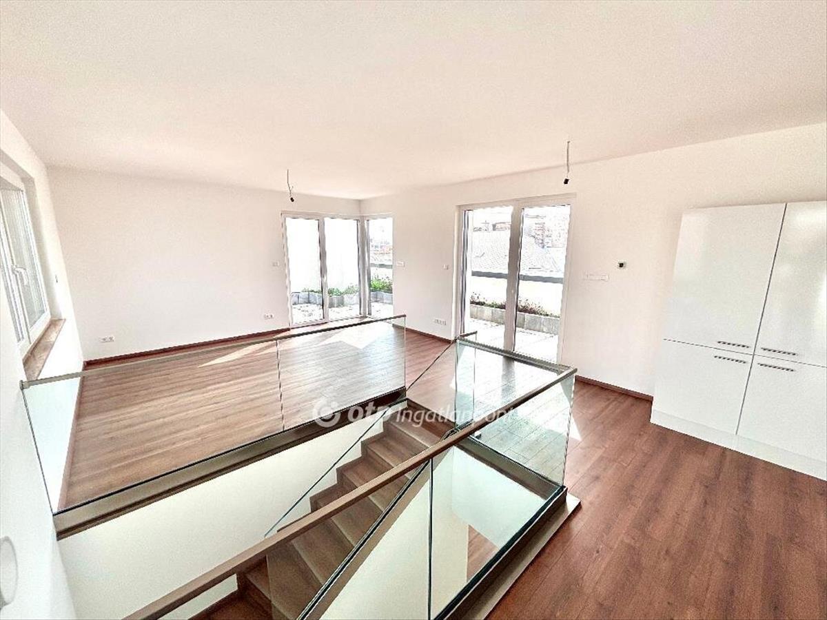A 2023-ban épült, aa++ energetikai besorolású zöld társasházban elhelyezkedő ingatlan 106 m2-es, 4 szobás, kétszintes kialakítású. a belső terekhez összesen közel 142 m2 terasz, valamint egy 5 m2-es erkély kapcsolódik, ami a belvárosi ingatlanpiacon egészen kivételes adottság. Ez a lakás nem egyszerűen egy otthon, hanem egy olyan élettér, ahol a városi elegancia és a szabadtéri életélmény ritka egységben jelenik meg.
