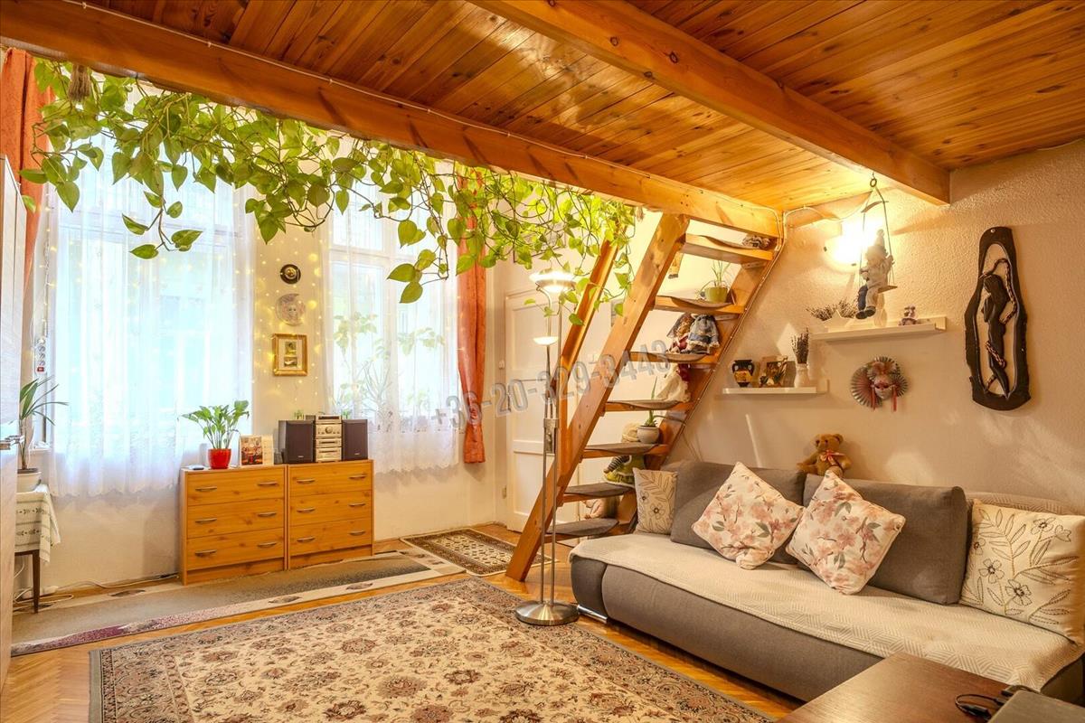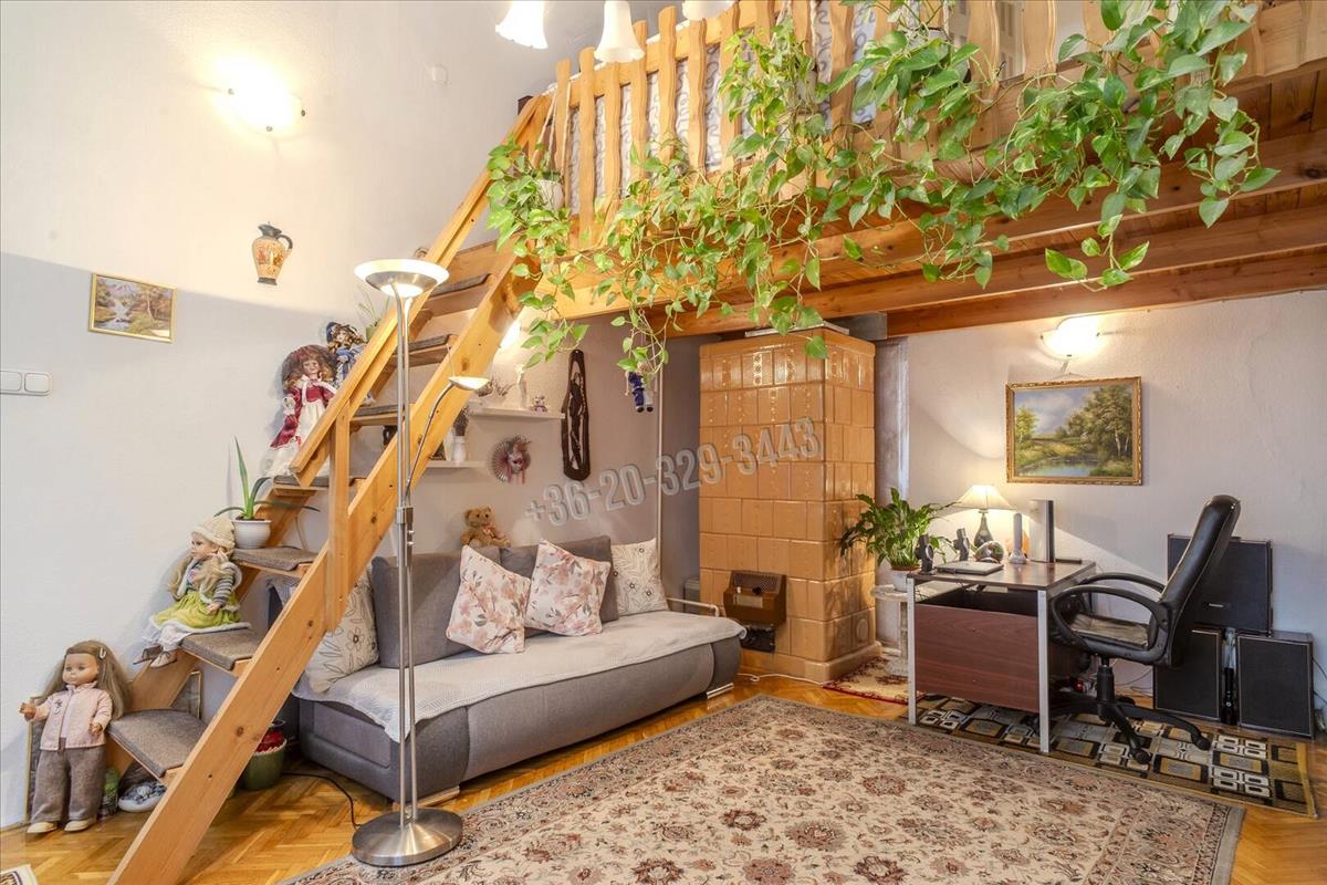 The entrance to the property is from the well-maintained courtyard planted with greenery, which is also where the apartment’s windows face. Rooms include: hallway, kitchen, living room, bedroom, bathroom, and pantry. The apartment has a ceiling height of 3. 65 Meters, allowing for the addition of 1. 5-Meter-high mezzanines in both rooms. The official 50 sqm floor area is complemented by 10 sqm and 3, 2 sqm mezzanine spaces, providing comfortable sleeping and storage areas, effectively increasing the apartment’s usable space and enhancing comfort. The spacious bathroom’s plumbing was renovated in 2016. The rooms have wooden parquet floors, while other areas are tiled. The complete kitchen furniture is included in the sale price. Heating is by Héra system, and the windows are in good condition though older.