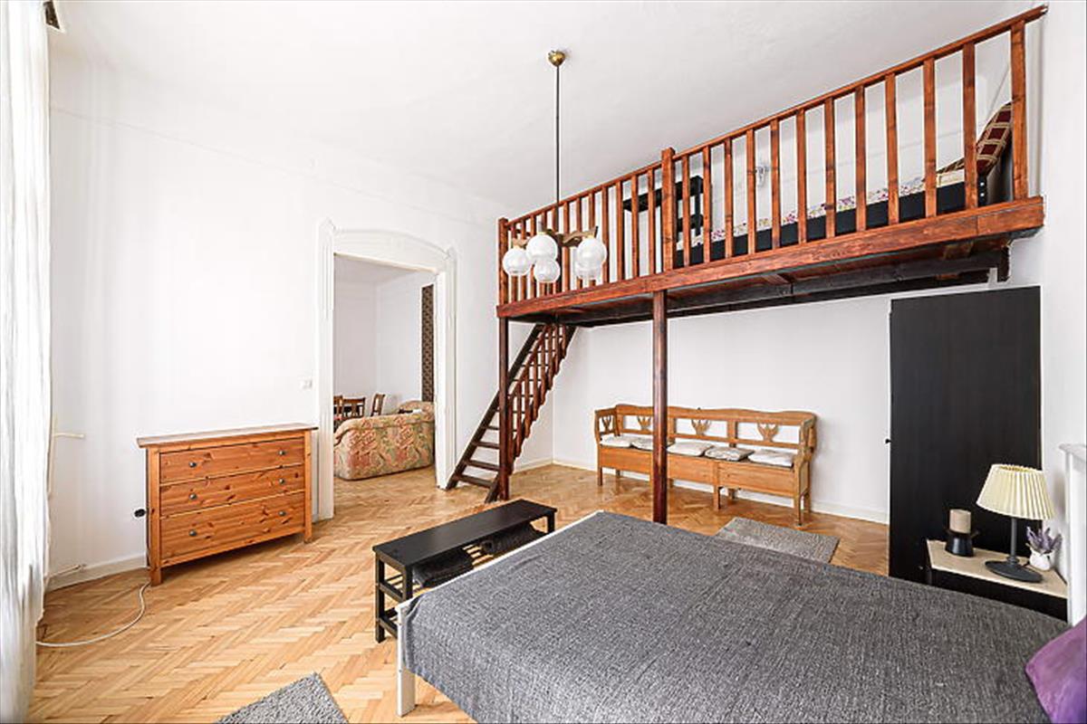 Palotanegyedben, Fodor Gyula által tervezett, századfordulós, liftes ház magas emeletén tágas lakás eladó.