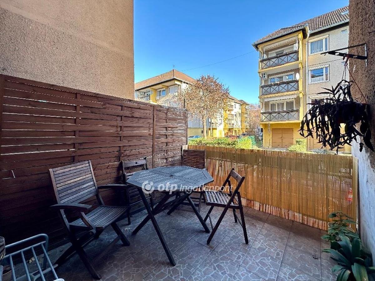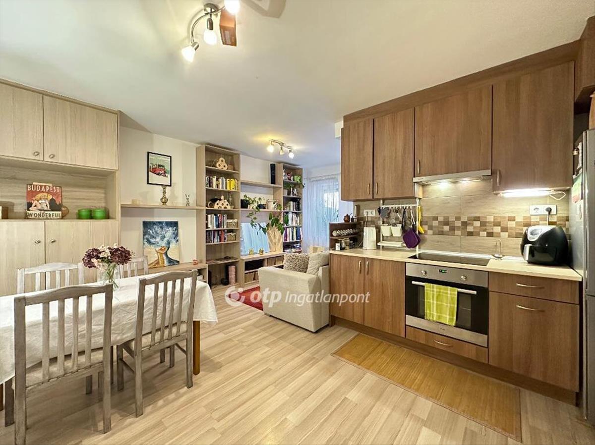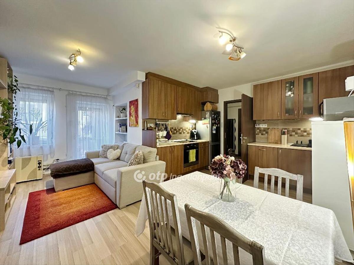 Eladó a Századosnegyedben egy jó állapotú, 55 nm -es, amerikai konyhás nappali + 2 szobás, földszinti lakás terasszal, tárolóval (8, 8 nm ).