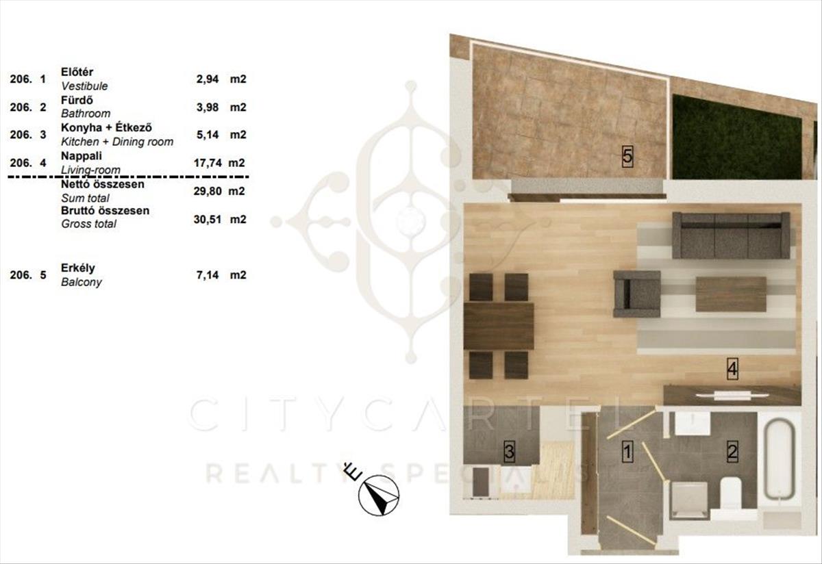 A liftes társasház 2. emeletén található, 30, 51 nm-es, (29, 8 nm lakás 7, 14 nm terasszal)1 szobás lakás korszerű hőszivattyús fűtés–hűtéssel és teljes körű okosotthon-rendszerrel felszerelve várja új tulajdonosát. a burkolatok még választhatók, így a leendő tulajdonos saját ízlésére szabhatja az ingatlant.