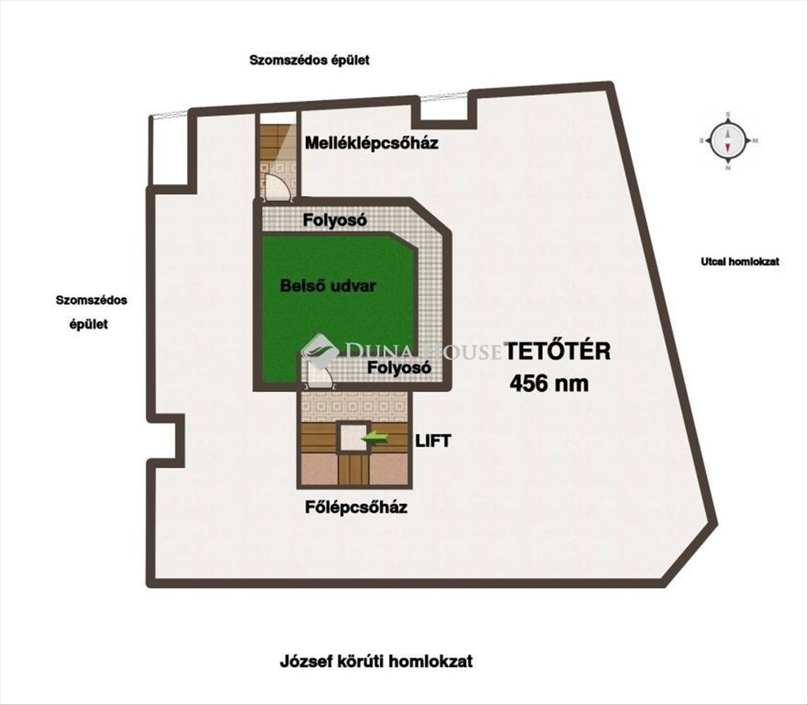 Eladó Budapest belvárosában, a József körúton, a Rákóczi tér közvetlen közelében egy 456 m²-es beépíthető tetőtér, kiváló adottságokkal és széles körű hasznosítási lehetőségekkel.