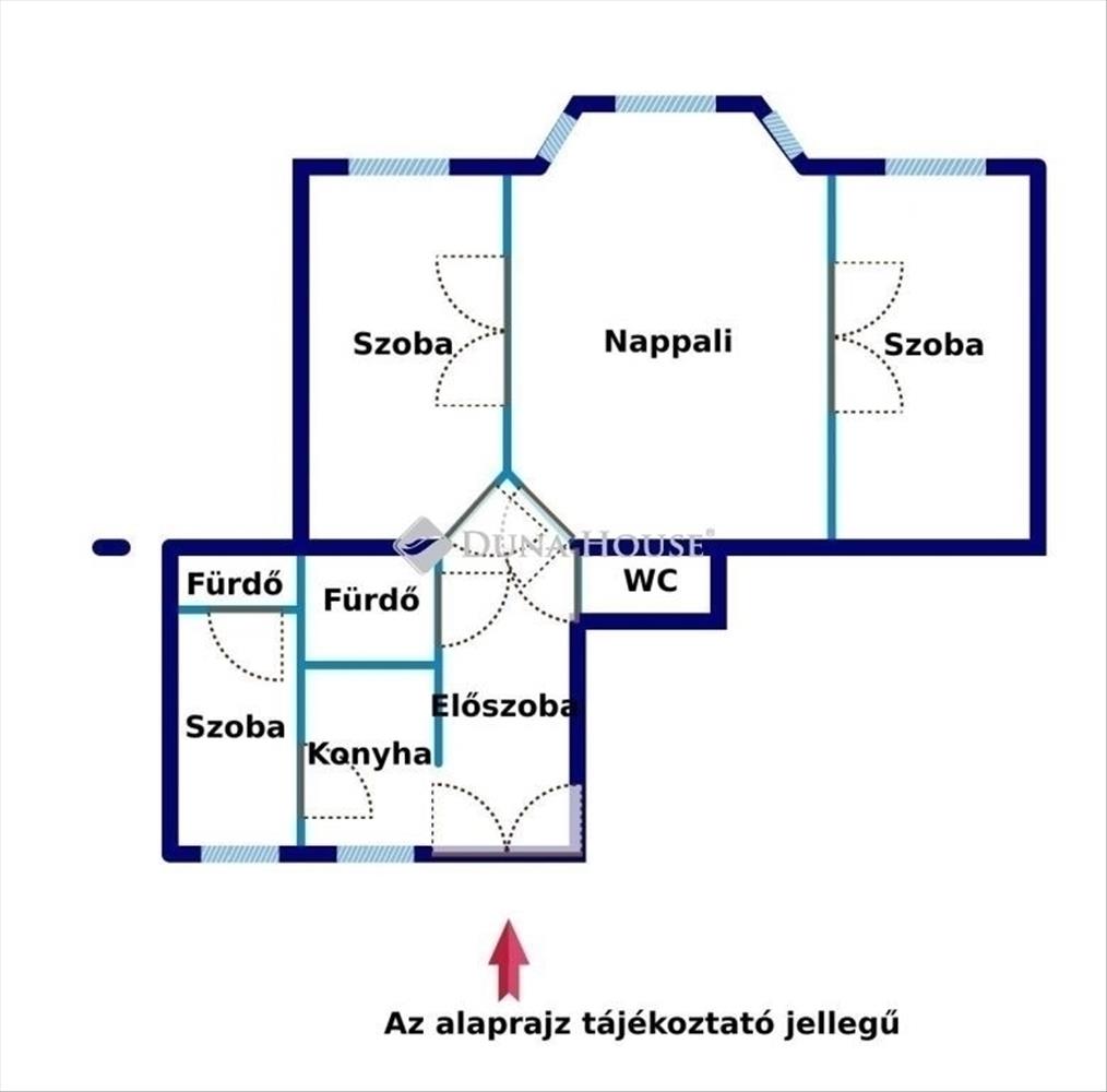 Az átalakítási lehetőségek különösen kedvezőek: a bejáratnál található konyha nappaliba történő áthelyezésével, valamint az ott lévő szoba összenyitásával könnyedén kialakítható egy négyszobás, jól élhető lakás.